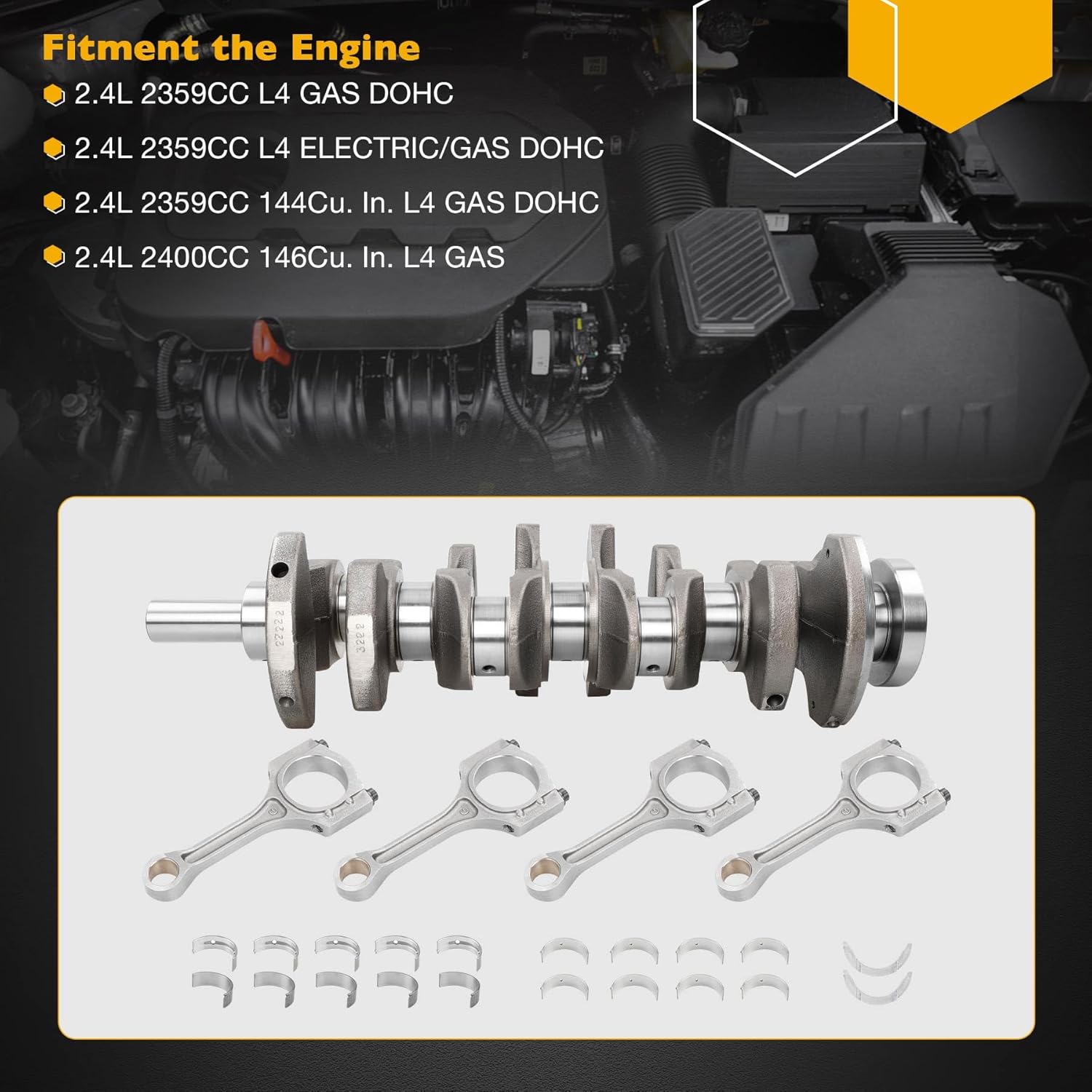 Kit de reconstrução de motor de 2,4L com conjunto de bielas e virabrequim, compatível com Kia Forte, Rondo, Sportage e Hyundai Tucson, Sonata e Santa (2010-2020). Este kit inclui peças de alta qualidade para garantir um desempenho otimizado e durabilidade do motor. Substitui a peça # 23111-2G200, proporcionando uma solução completa para reparos e manutenção. Ideal para quem busca restaurar a potência e eficiência do veículo, reduzindo custos com manutenção a longo prazo.