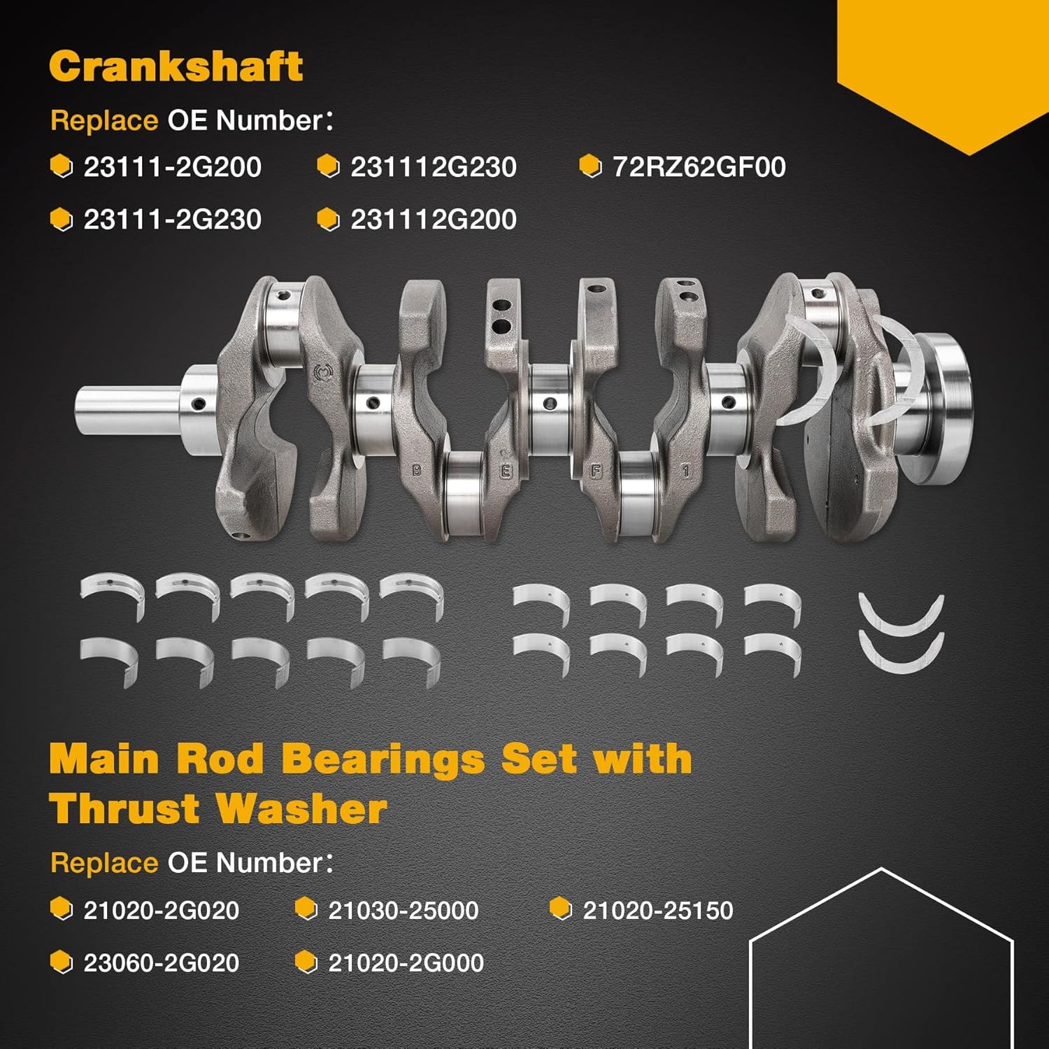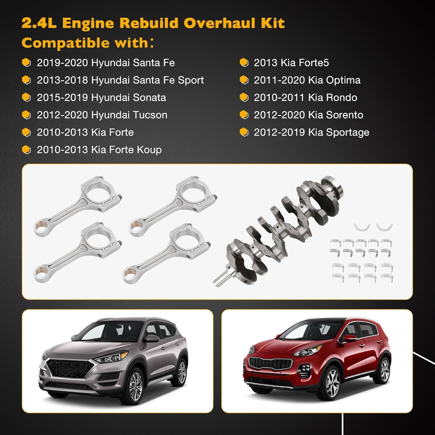Kit de Reparo Completo do Motor 2.4L com Conjunto de Biela e Virabrequim, Compatível com Kia Forte, Rondo, Sportage, Hyundai Tucson, Sonata e Santa 2.4 (2010-2020) - Substitui # 23111-2G200
