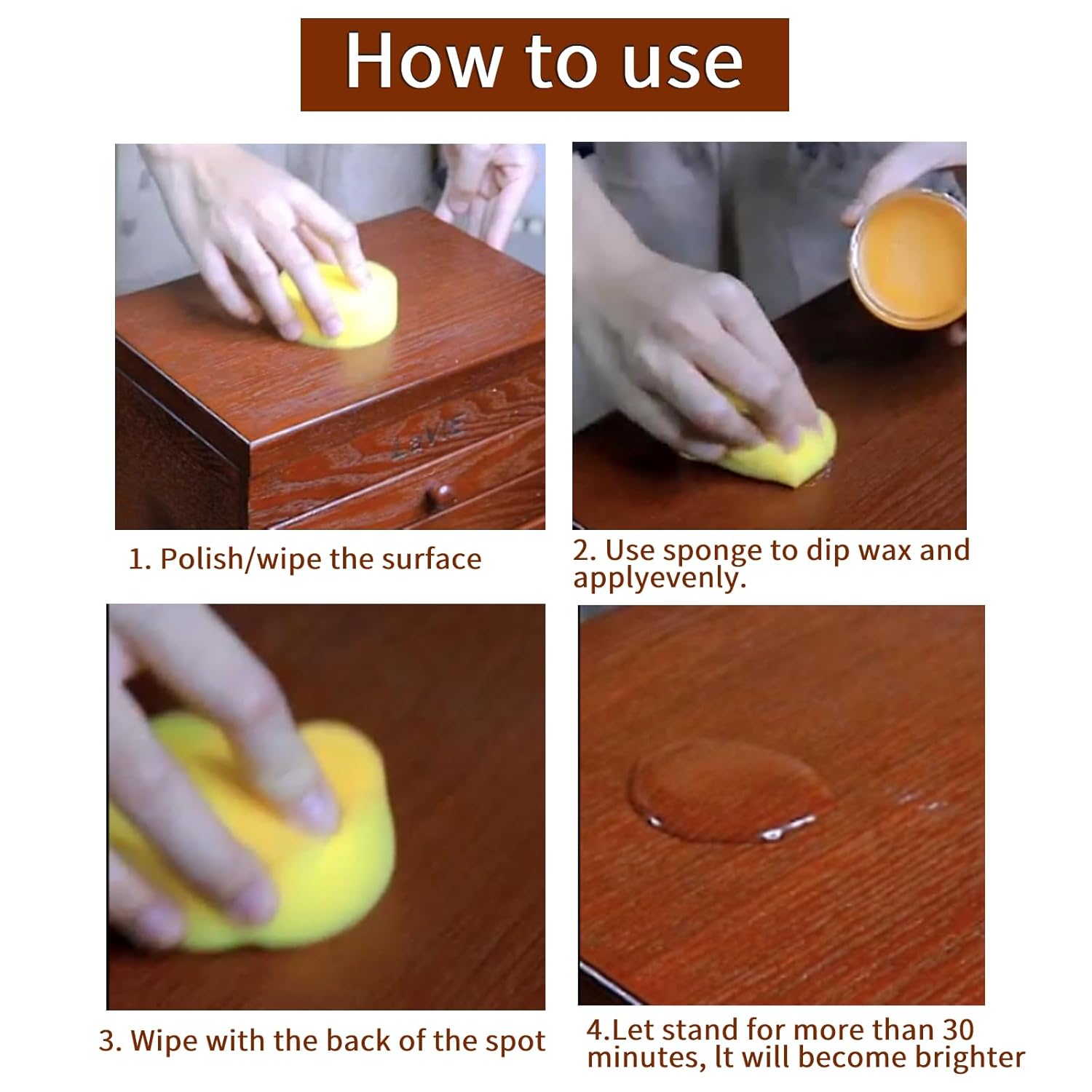2. Utilize uma esponja ou pano macio para aplicar a cera de maneira uniforme na superfície.