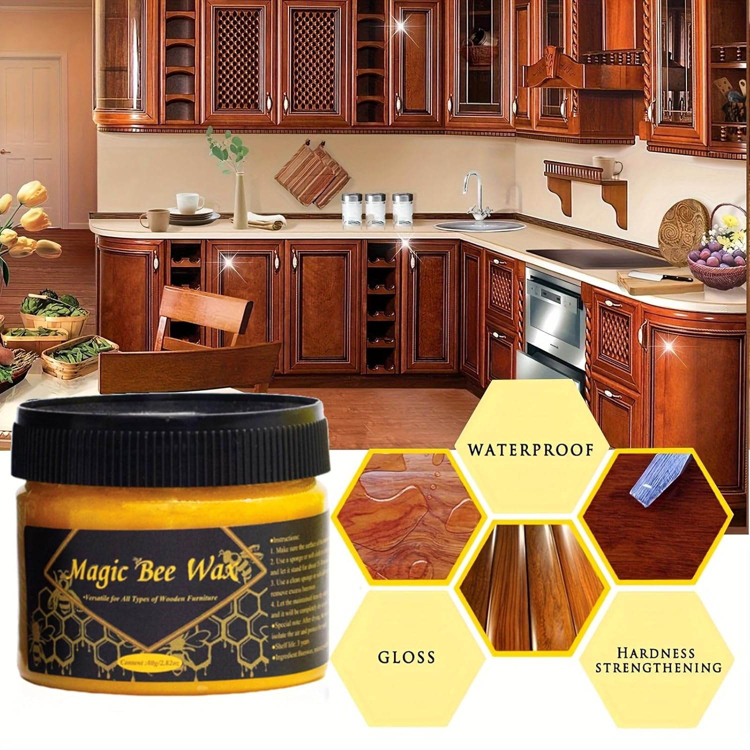 Com um tamanho compacto de 2.28 x 1.97 x 1.97 polegadas e pesando 80g, a cera é fácil de manusear e armazenar. O produto é seguro e não tóxico, garantindo que a manutenção dos seus móveis nunca foi tão simples. A cera de madeira é ideal para uma variedade de superfícies, incluindo pisos de madeira, móveis de mogno, ornamentos de madeira e muito mais. Além disso, a cera exala um leve aroma natural de mel, proporcionando uma experiência agradável durante o uso.