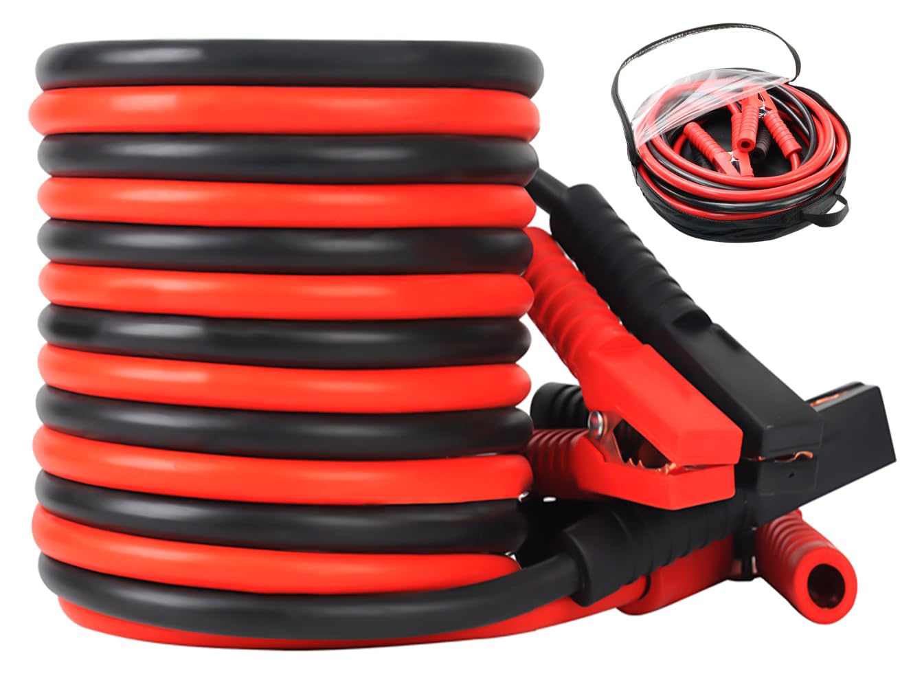 A construção dos cabos é feita com materiais de alta qualidade, incluindo isolamento resistente à abrasão, que garante durabilidade e segurança durante o uso. As garras de alta resistência proporcionam uma conexão firme e segura, minimizando o risco de falhas durante a partida. O comprimento generoso de 20 pés permite que você alcance facilmente a bateria de outro veículo, mesmo em situações de estacionamento apertado. Para facilitar o transporte e o armazenamento, os cabos vêm acompanhados de uma prática bolsa com zíper e alça.