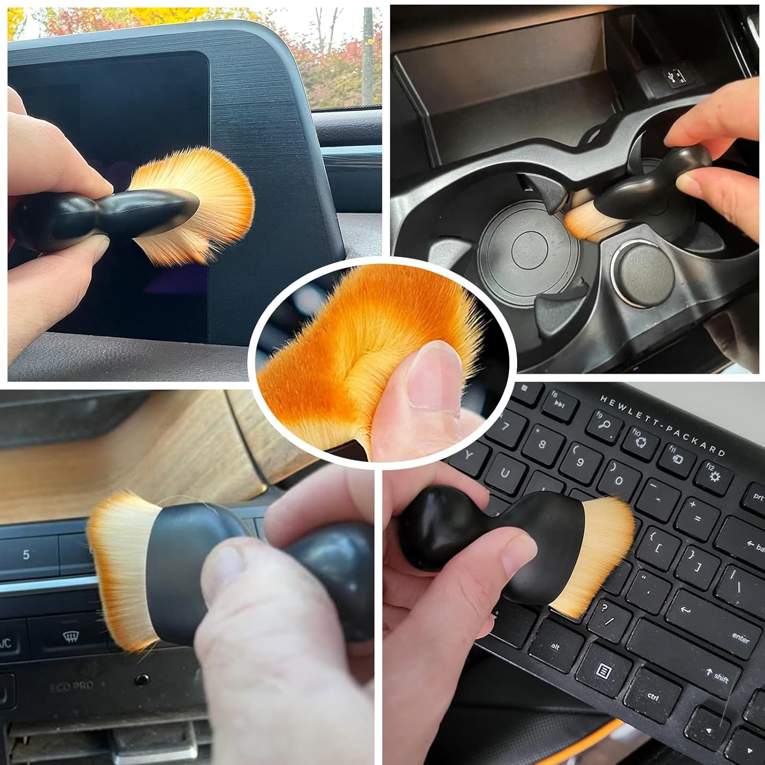 I hate seeing dust build up around my dash, especially around the instrument panel and on top of the dash where it’s very visible. I’ve always kept a detailing brush around, and this is one of the best I’ve had. It’s wide enough so that it doesn’t take forever to get all the dust off the top of the dash by swiping a skinny brush, I can get it all in about 30 seconds. At the same time it’s thin enough in the other dimension to get into most crevices. The bristles are extremely soft, no worries about scratching anything. The handle is easy to, well, handle–it’s short, which is great for storage in almost any nook in the console or in the glove compartment, the downside being a long handle can make it easier to reach into some spots. I’m very happy with it, I keep one in my car and one in my truck. Comes with a plastic case that snaps shut around the head of the brush, good for keeping it clean and avoid damage to the bristles.
