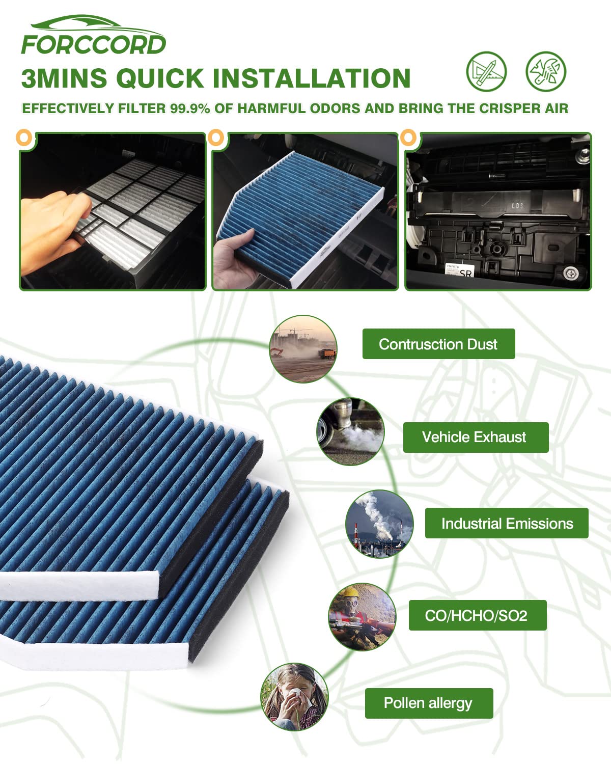 – Material de 5 Camadas: Ao contrário dos filtros de cabine padrão, nosso filtro é fabricado com um tecido de filtro de seda azul de grande capacidade, combinado com um tecido derretido, e um filtro HEPA de dupla camada, capaz de remover 99,9% de poluentes nocivos, como poeira, pólen e gases de escape.