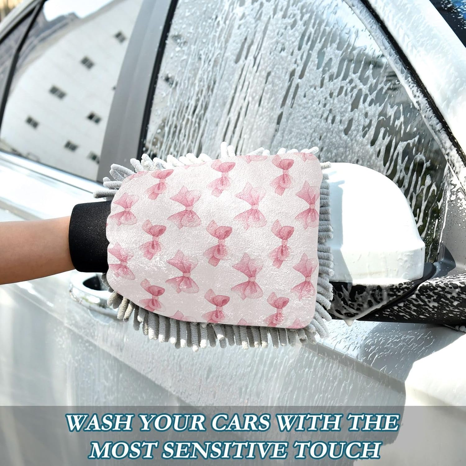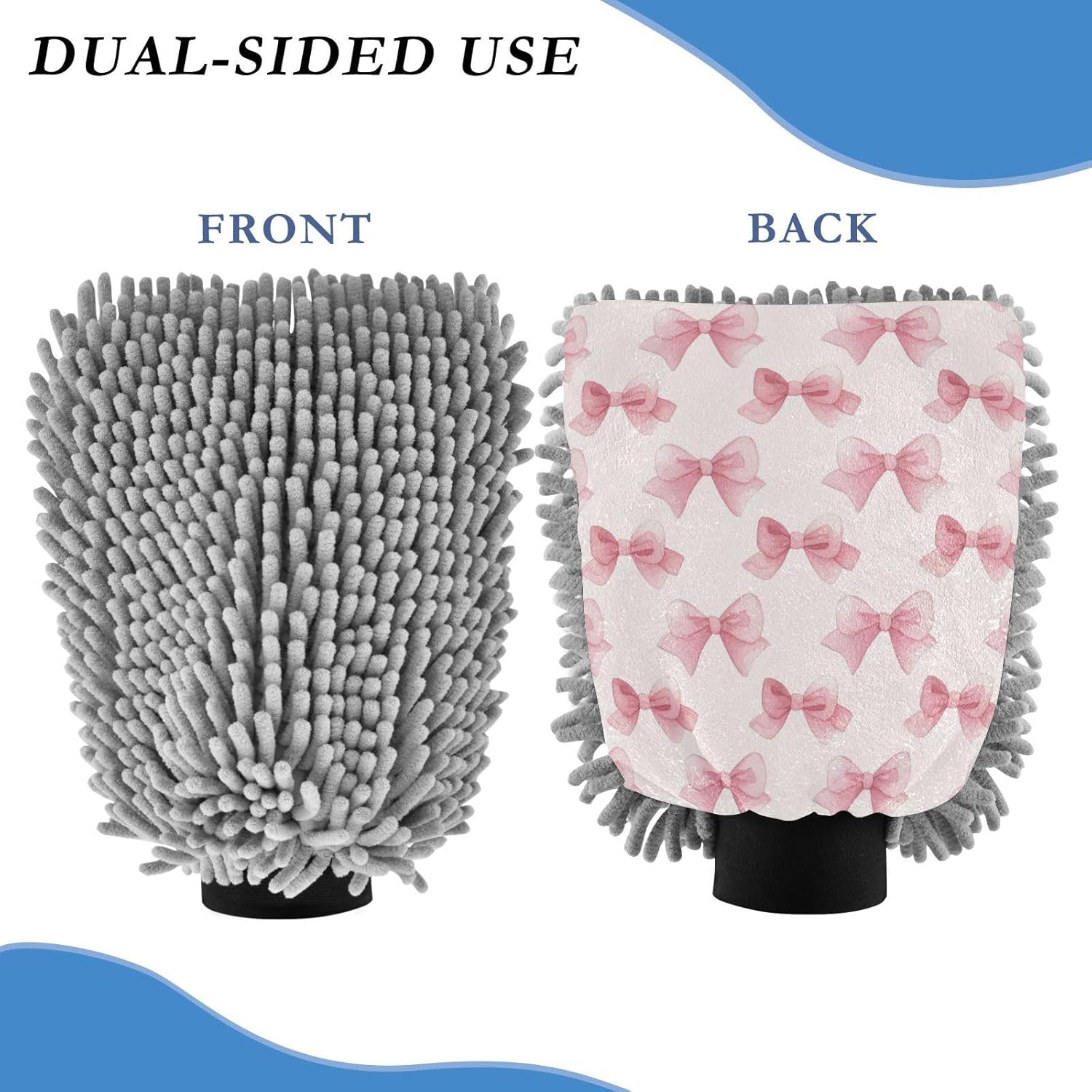 Apresentamos o 2 Pack Pink Bow Car Wash Mitt, um par de luvas de lavagem de carro que combina eficiência e delicadeza, projetadas para proporcionar uma limpeza impecável sem arranhar a pintura do seu veículo. Fabricadas com uma mistura premium de microfibra 70/30, essas luvas são verdadeiros ímãs de sujeira, removendo detritos de forma mágica enquanto protegem a superfície do seu carro. As fibras ultra-densas de chenille capturam a sujeira profundamente, evitando marcas de redemoinhos e garantindo um acabamento perfeito.