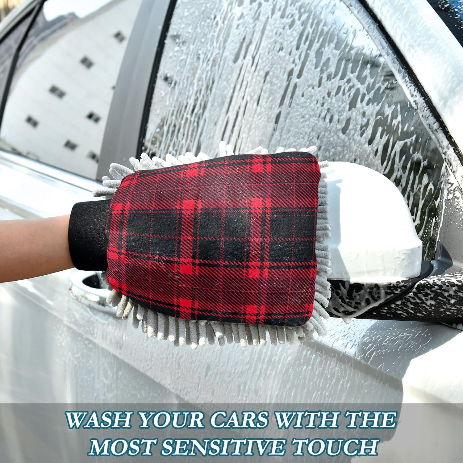 Apresentamos o 2 Pack Red and Black Plaid Car Wash Mitt, um par de luvas de lavagem de carro que combina eficiência e proteção em um design elegante. Composto por uma mistura premium de microfibra 70/30, este produto é ideal para quem busca uma limpeza suave e sem riscos para a pintura do veículo. As fibras chenille ultra-densas capturam a sujeira de forma mágica, evitando marcas de redemoinhos e garantindo um acabamento impecável.
