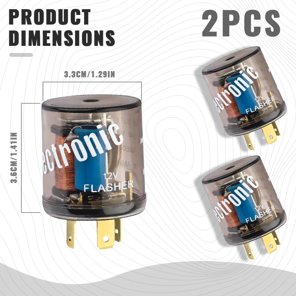 Relé Eletrônico LED 12V 3 Pinos – 2 PCS, Pisca-Pisca para Automóveis e Motos, 20 Amperes, Compatível com Lâmpadas Incandescentes e LED