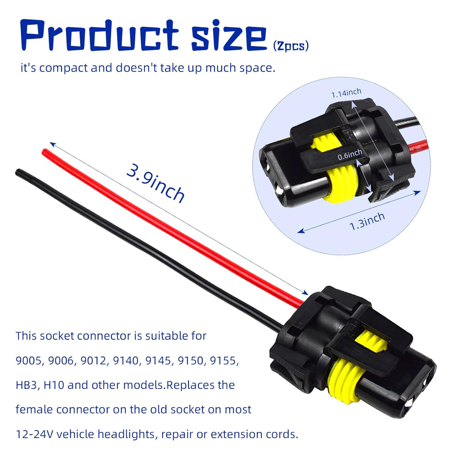 Resposta: O Adaptador Fêmea 2 PCS é compatível com modelos 9005, 9006, 9012, 9140, 9145, 9150, 9155, HB3, H10 e outros conectores de fibra óptica. Verifique a especificação do seu veículo para garantir a compatibilidade.