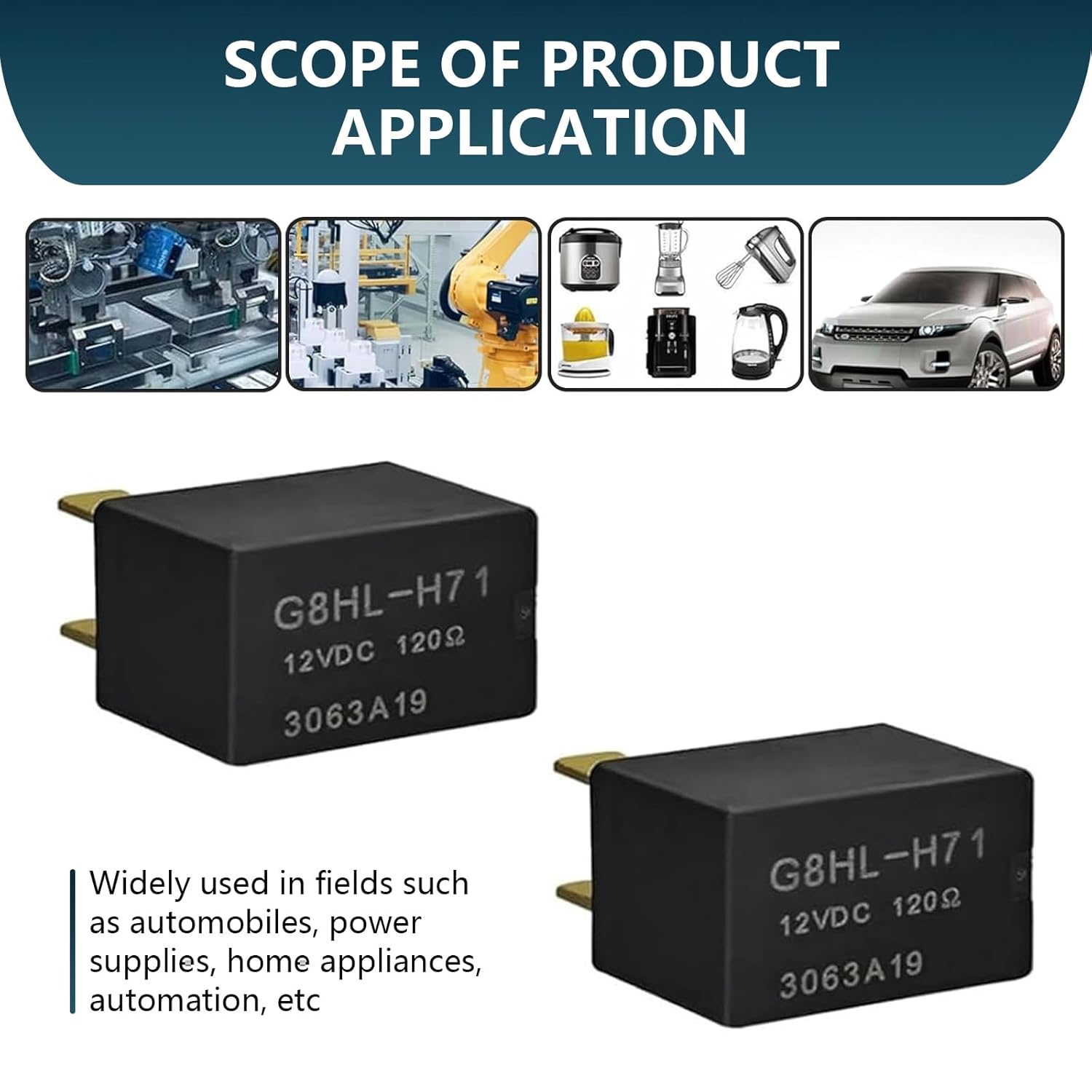 Informações OEM: O número OEM deste relé é G8HL-H71, com uma tensão nominal de 12 V e dimensões de 0.86 In x 0.55 In x 0.62 In. Com uma potência nominal de 4.8 W, você receberá dois relés em cada compra, suficientes para atender suas necessidades diárias.