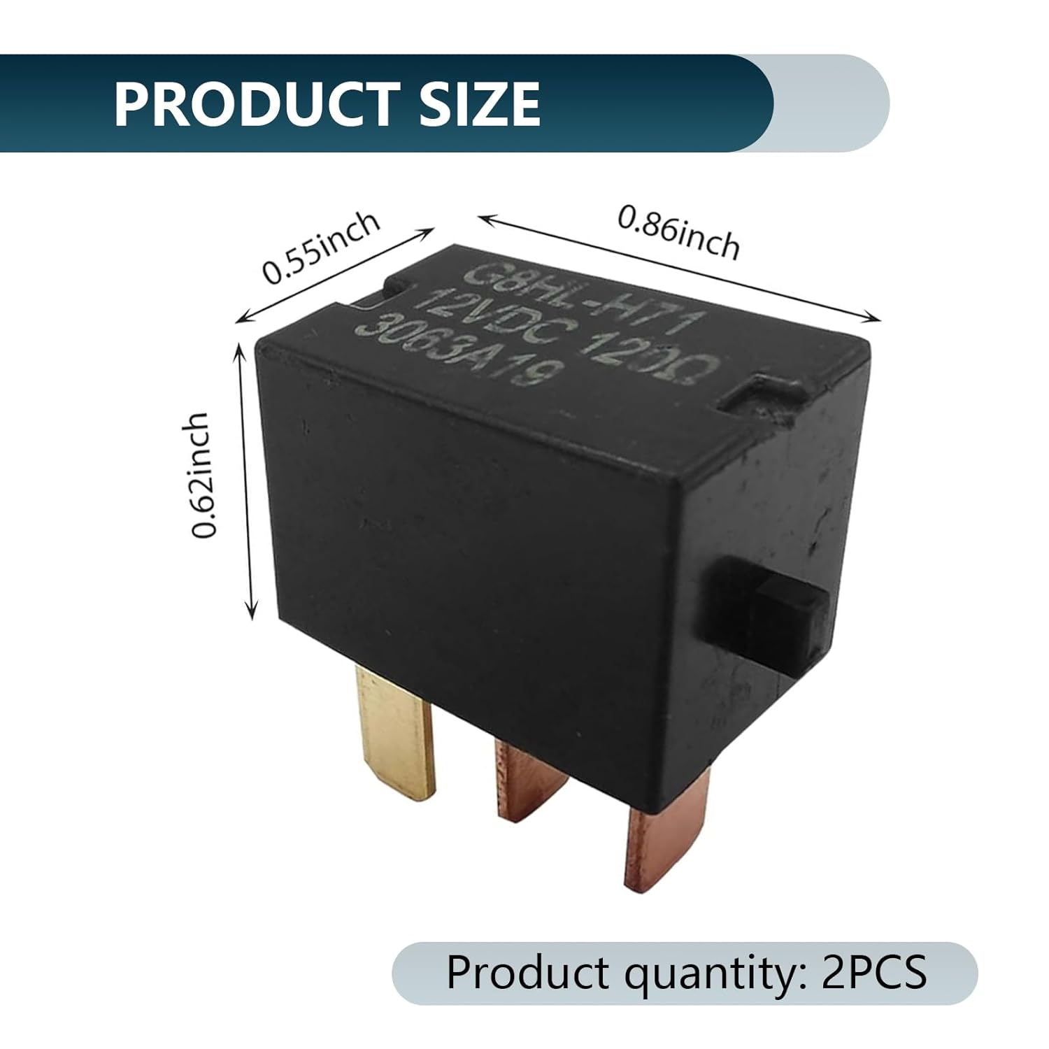 Informações OEM: O número OEM deste relé é G8HL-H71, com uma tensão nominal de 12 V e dimensões de 0.86 In x 0.55 In x 0.62 In. Com uma potência nominal de 4.8 W, você receberá dois relés em cada compra, suficientes para atender suas necessidades diárias.