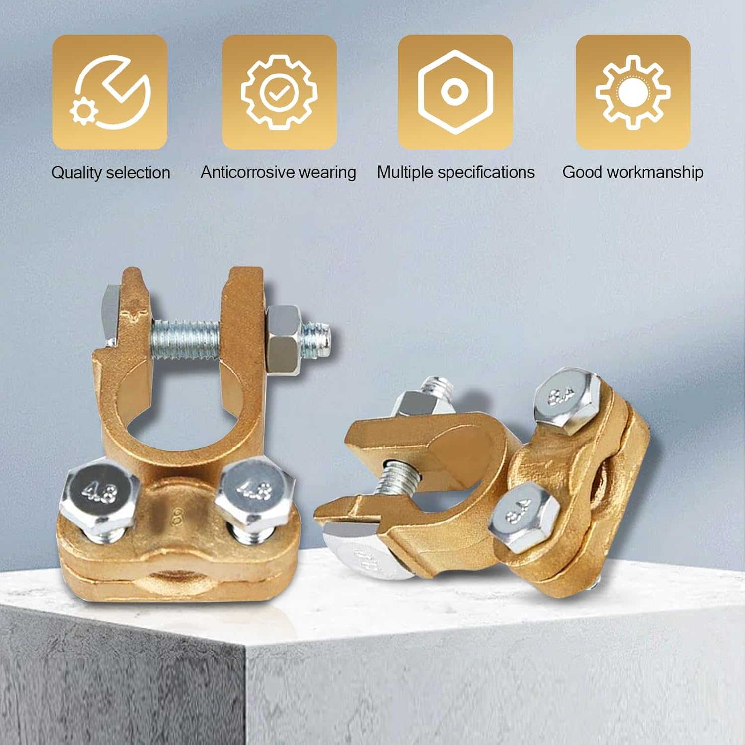Conjunto de 2 Terminais de Cabo de Cobre Puro para Automóveis - Conectores Positivo e Negativo para Reparos e Substituição de Braçadeiras de Energia Universal