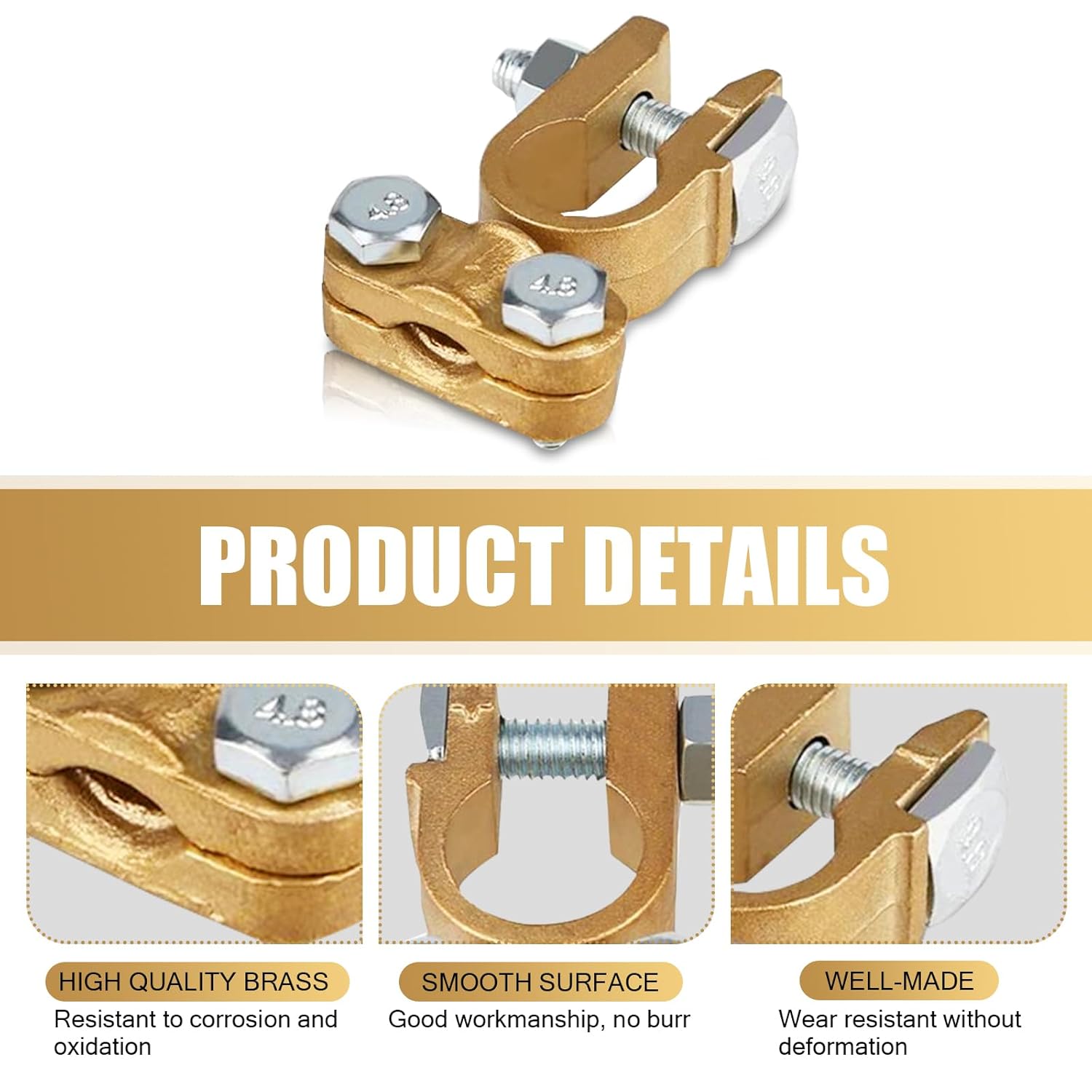 Conjunto de 2 Terminais de Cabo de Cobre Puro para Automóveis, ideal para substituição de braçadeiras de energia. Inclui conectores de interruptor positivo e negativo, garantindo uma conexão segura e eficiente. Feitos de cobre puro, oferecem excelente condução elétrica e durabilidade. Perfeitos para reparos em carros, são universais e fáceis de instalar, proporcionando uma solução prática e confiável para problemas elétricos automotivos.