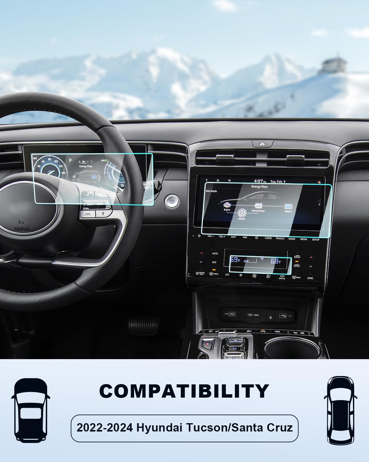 Protetor de Tela para Hyundai Tucson 2024 – (3PCS) Acessórios para Tucson 2022 2023 2024 (N Line/Limited/Hybrid Limited) – Vidro Temperado 9H para Tela de Navegação de 10″ e Tela de Painel de AC de 10.25″