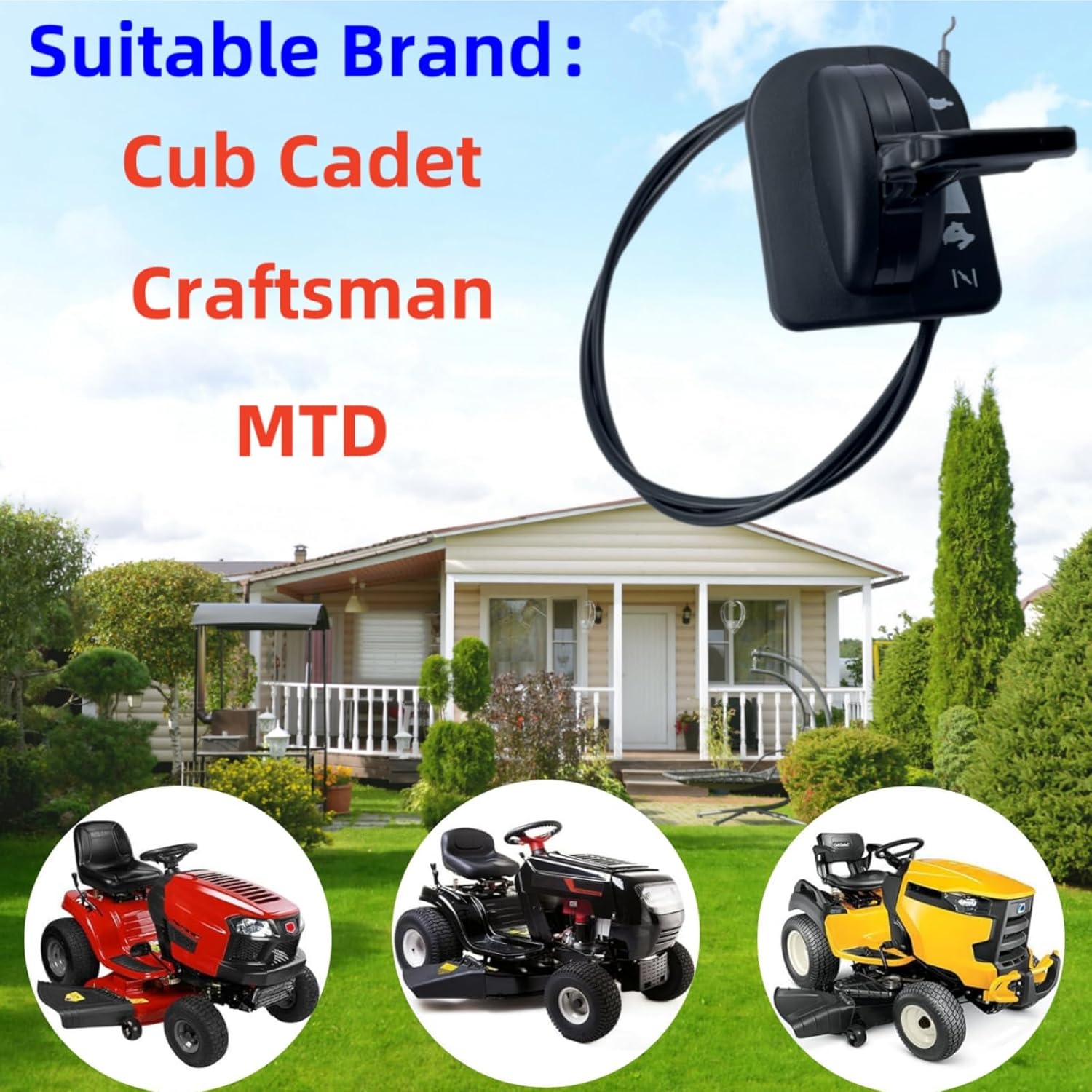 Este cabo de aceleração e choke é projetado para se encaixar perfeitamente em tratores de gramado MTD, Cub Cadet e Craftsman. Os modelos compatíveis incluem, mas não se limitam a, XT1-LT46, XT1-LT46FAB, XT1-GT50, XT1-LT50, XT1-LT54FAB, XT2-LX42, XT2-LX46, XT2-GX54FAB e XT2-ST54FAB.