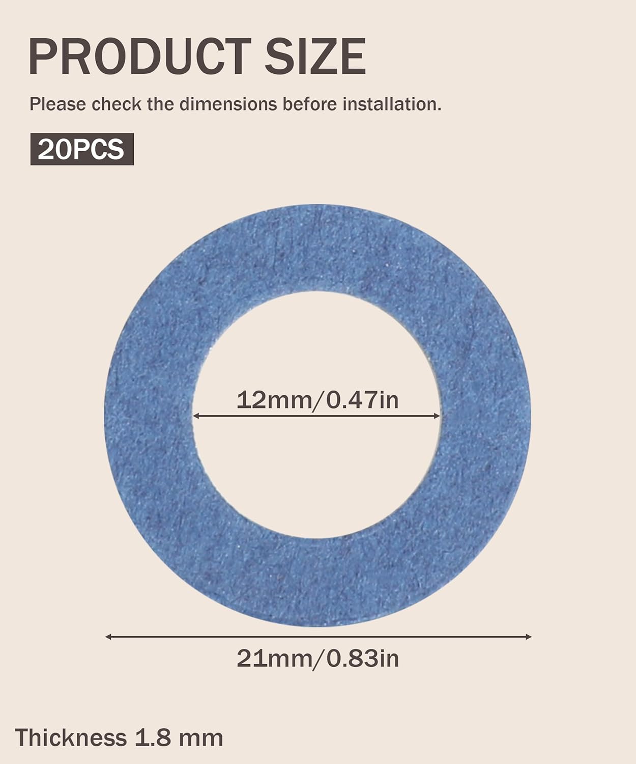 Mantenha seu veículo em perfeito estado com o nosso conjunto de 20 peças de gaxetas para plug de drenagem de óleo em alumínio. Cada gaxeta possui um diâmetro interno de 12 mm, um diâmetro externo de 21 mm e uma espessura de 1,8 mm, garantindo um encaixe preciso e seguro. Antes da instalação, verifique as dimensões para assegurar a compatibilidade com seu modelo.