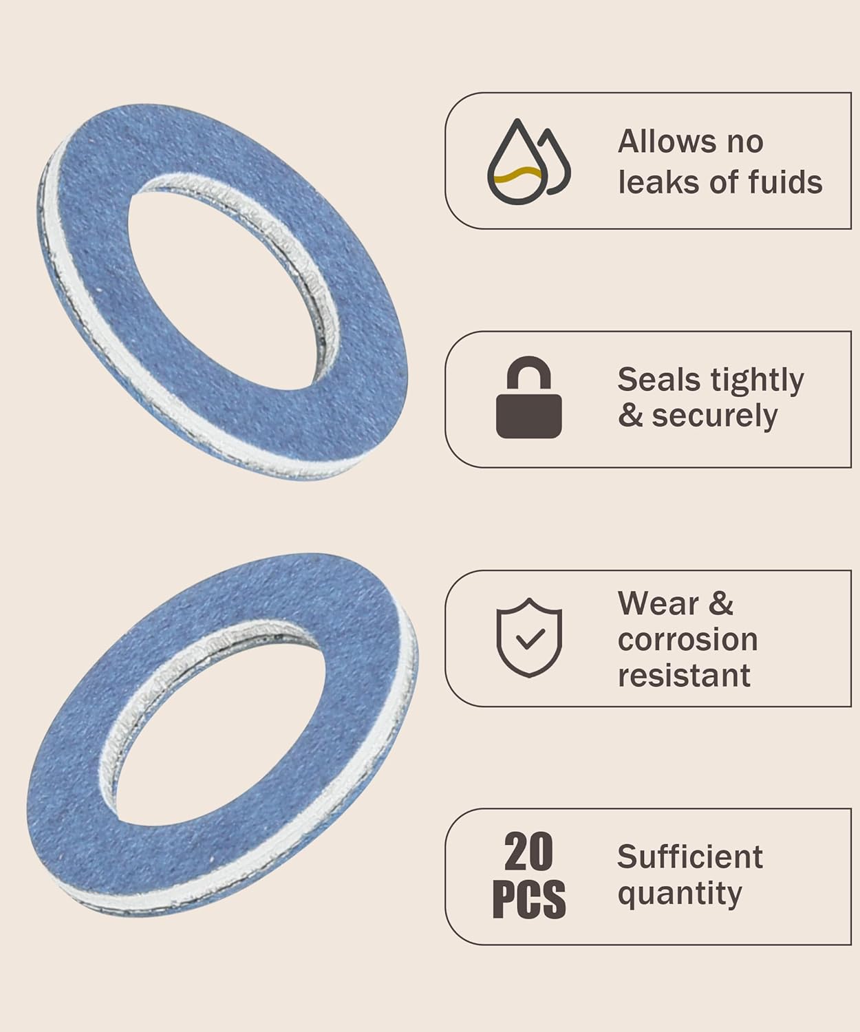 Descrição do Produto: 20pcs Gasket Washer para Plug de Drenagem de Óleo em Alumínio