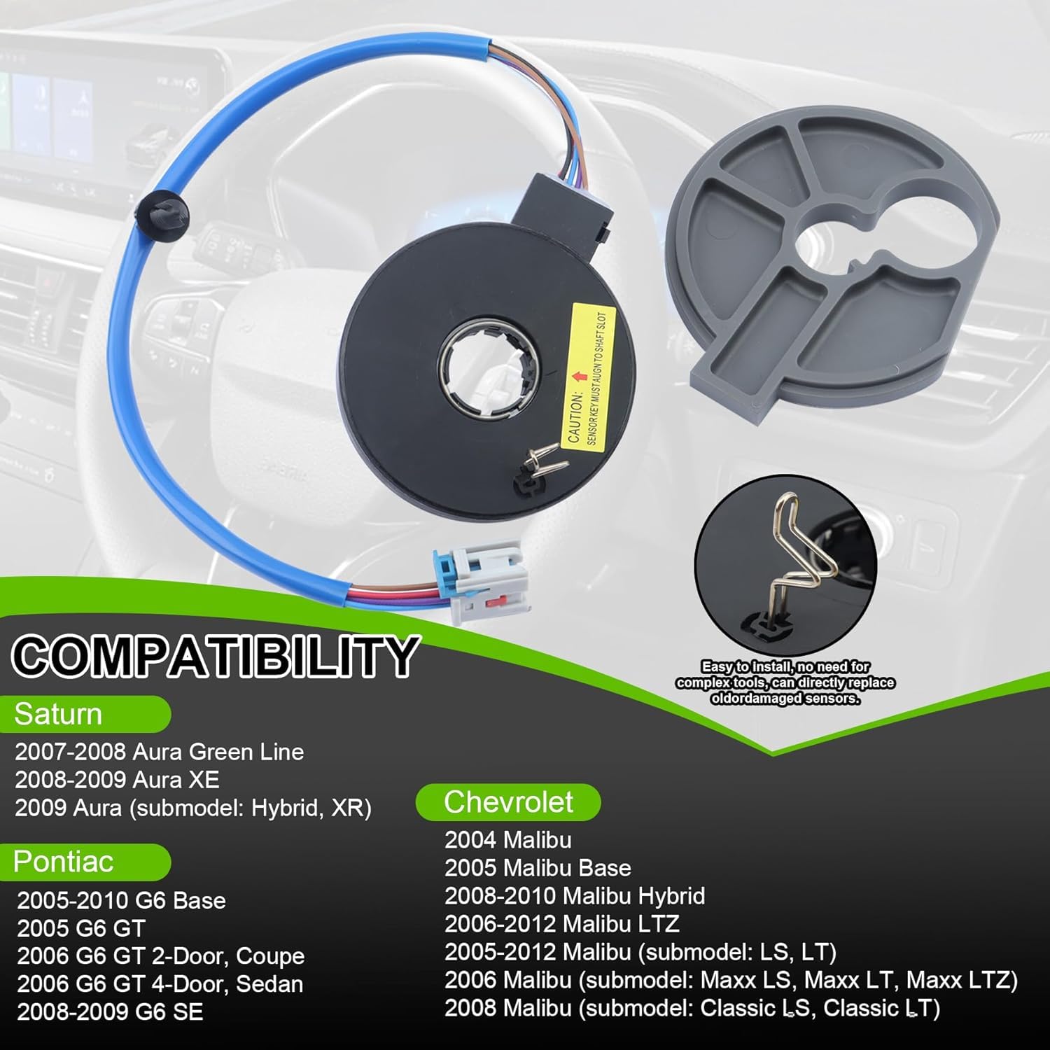 Compatibilidade: Sensor de Torque da Direção compatível com 2004 – 2012 Chevrolet Malibu, 2005 – 2010 Pontiac G6 e 2007 – 2009 Saturn Aura.