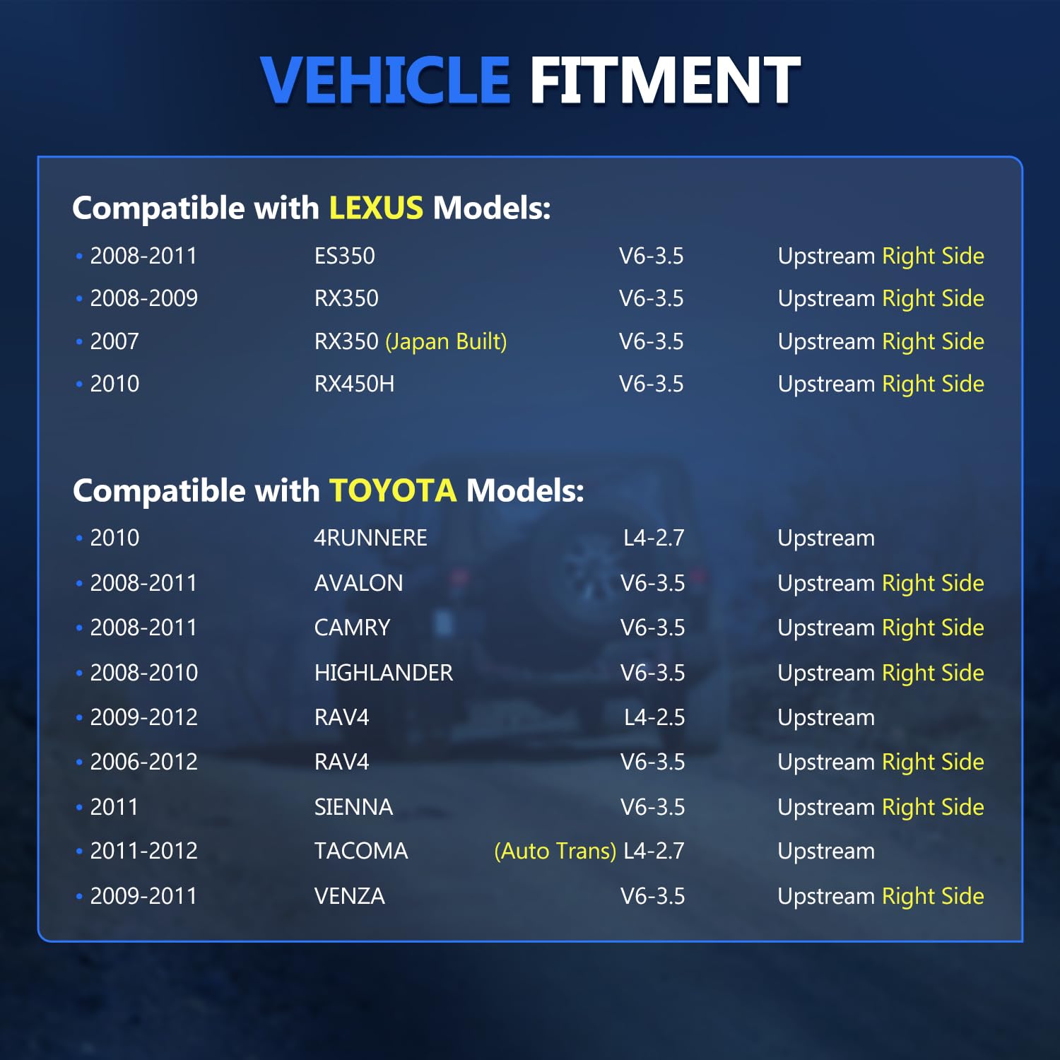 - 🔧【Aplicações】Compatível com Toyota 2010 4Runner 2.7L 4WD/RWD, 2008-2011 Avalon Camry 3.5L, 2008-2010 Highlander 3.5L, 2006-2012 RAV4 3.5L, 2011 Sienna 3.5L, 2011-2012 Tacoma 2.7L Auto Trans, 2009-2011 Venza 3.5L.
