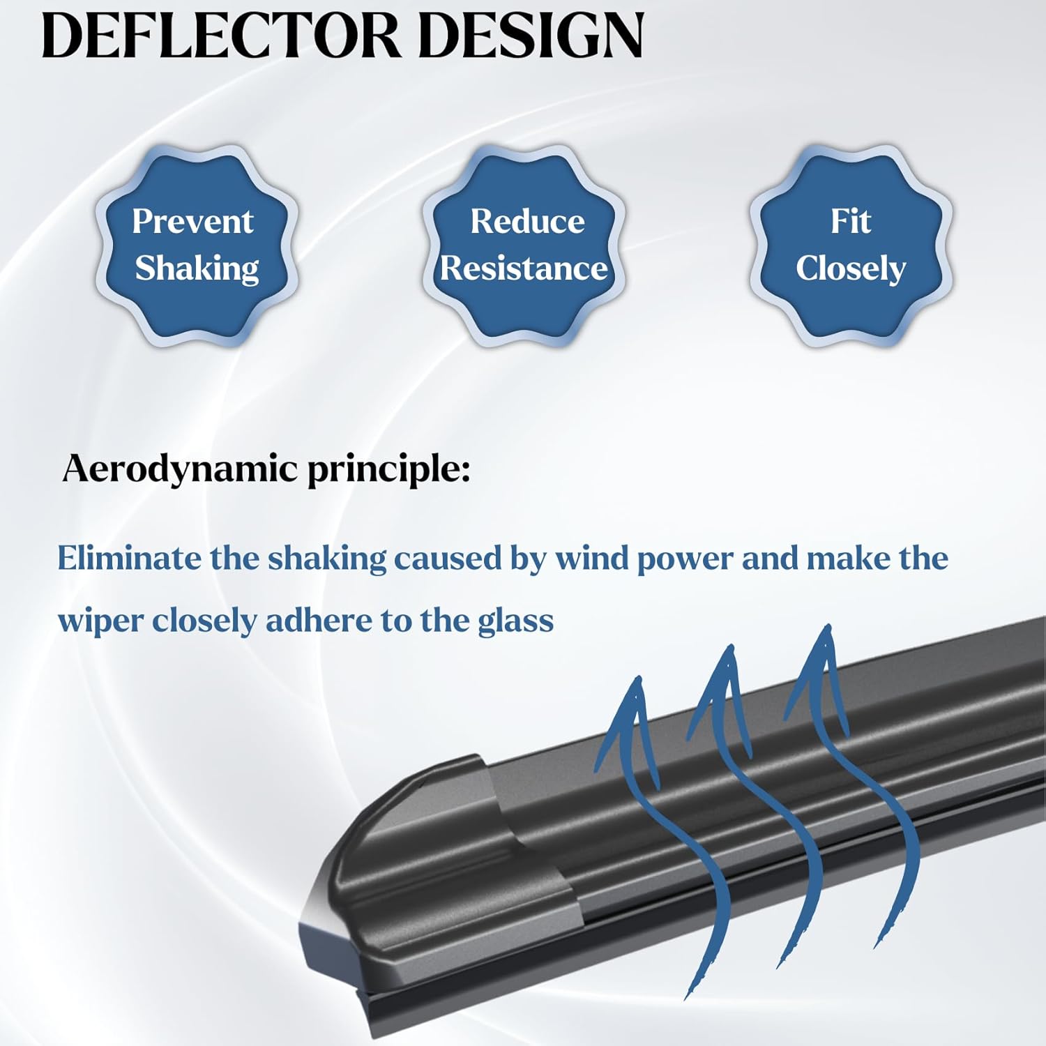 Bom Desempenho em Limpeza Molhada: Nossas lâminas são projetadas para um desempenho de limpeza molhada eficiente, garantindo visibilidade clara mesmo durante chuvas fortes. A tecnologia avançada das lâminas reduz a acumulação de água, tornando-as apropriadas para o inverno e outras condições climáticas desafiadoras.