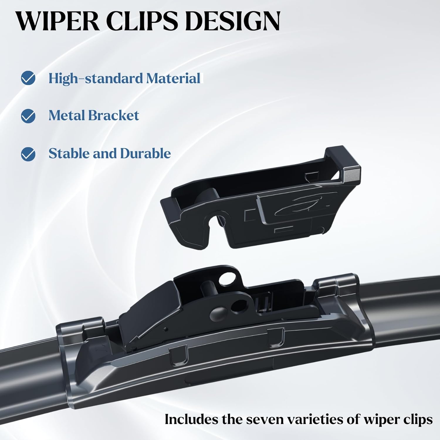 These wiper blades fit my car perfectly and I like that it included all of the different types of clips to ensure that it was going to fit my car. It went right on without a problem and is holding well. The windows are clean and haven’t had any issues.