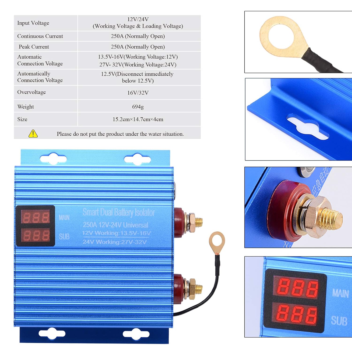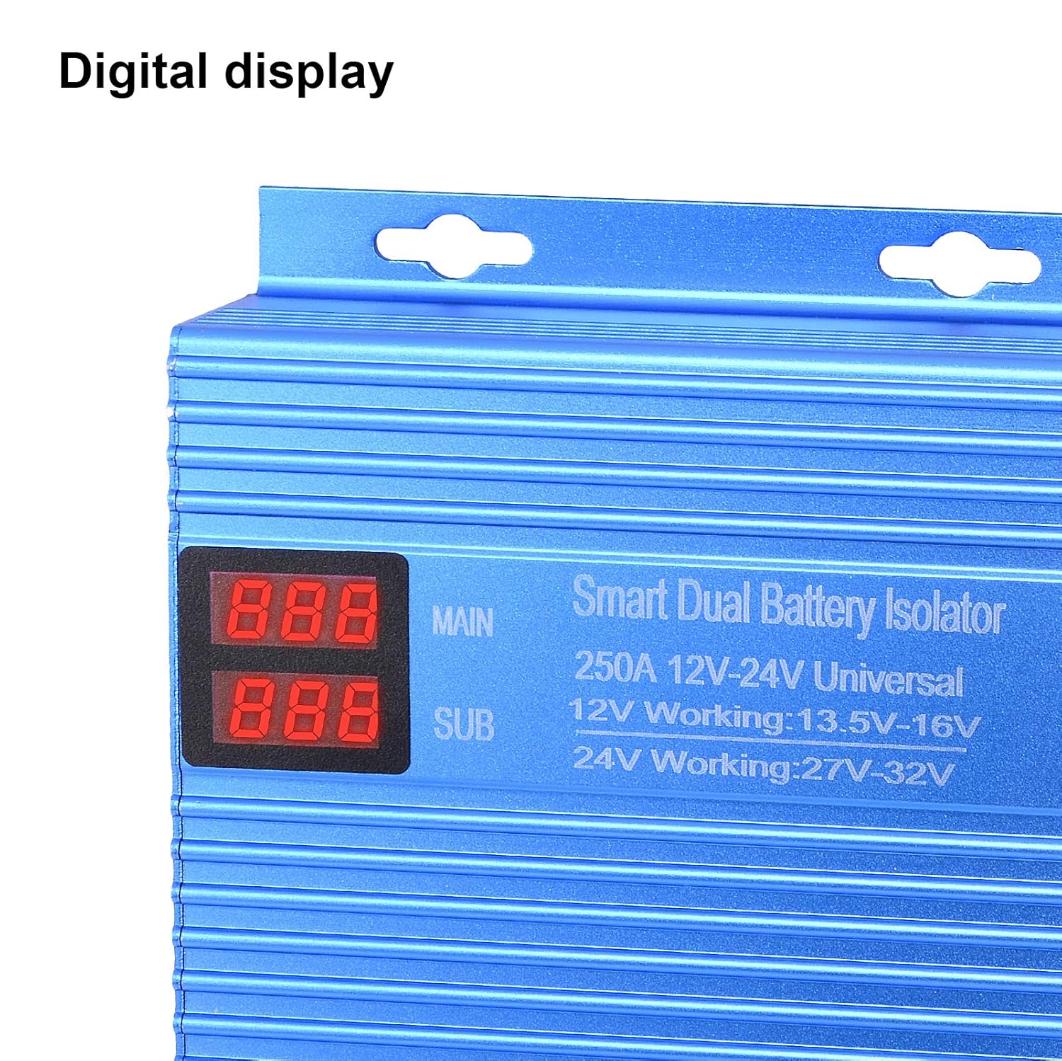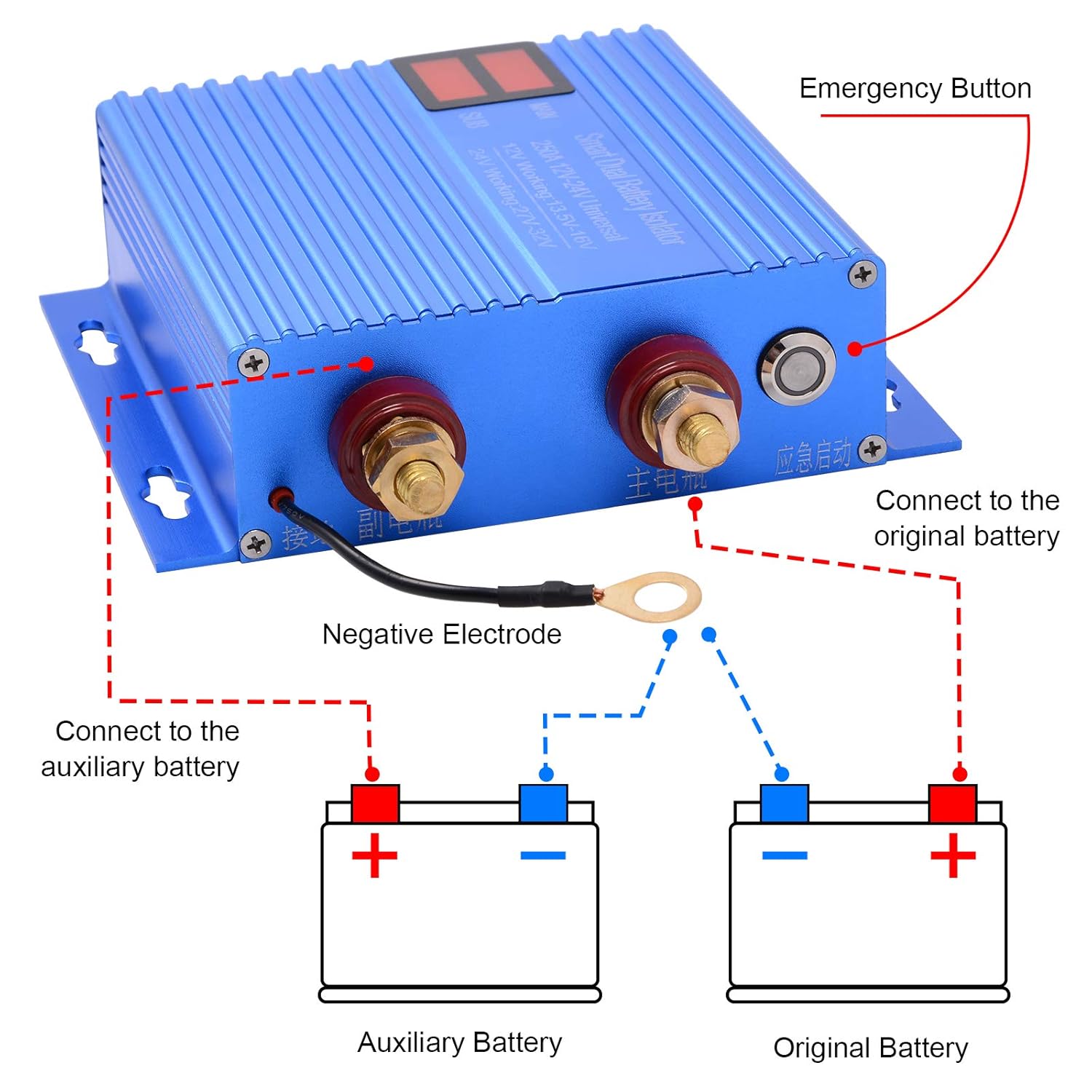 O Kit Isolador de Bateria Dual 250 AMP Universal 12V-24V VSR é a solução definitiva para quem busca eficiência e segurança no gerenciamento de baterias em veículos como carros, caminhões, RVs e até em aplicações de camping. Com um relé de alta corrente de 250 Amp, este isolador é projetado para funcionar em sistemas de 12V e 24V, oferecendo um display LCD que exibe a voltagem de duas baterias simultaneamente.