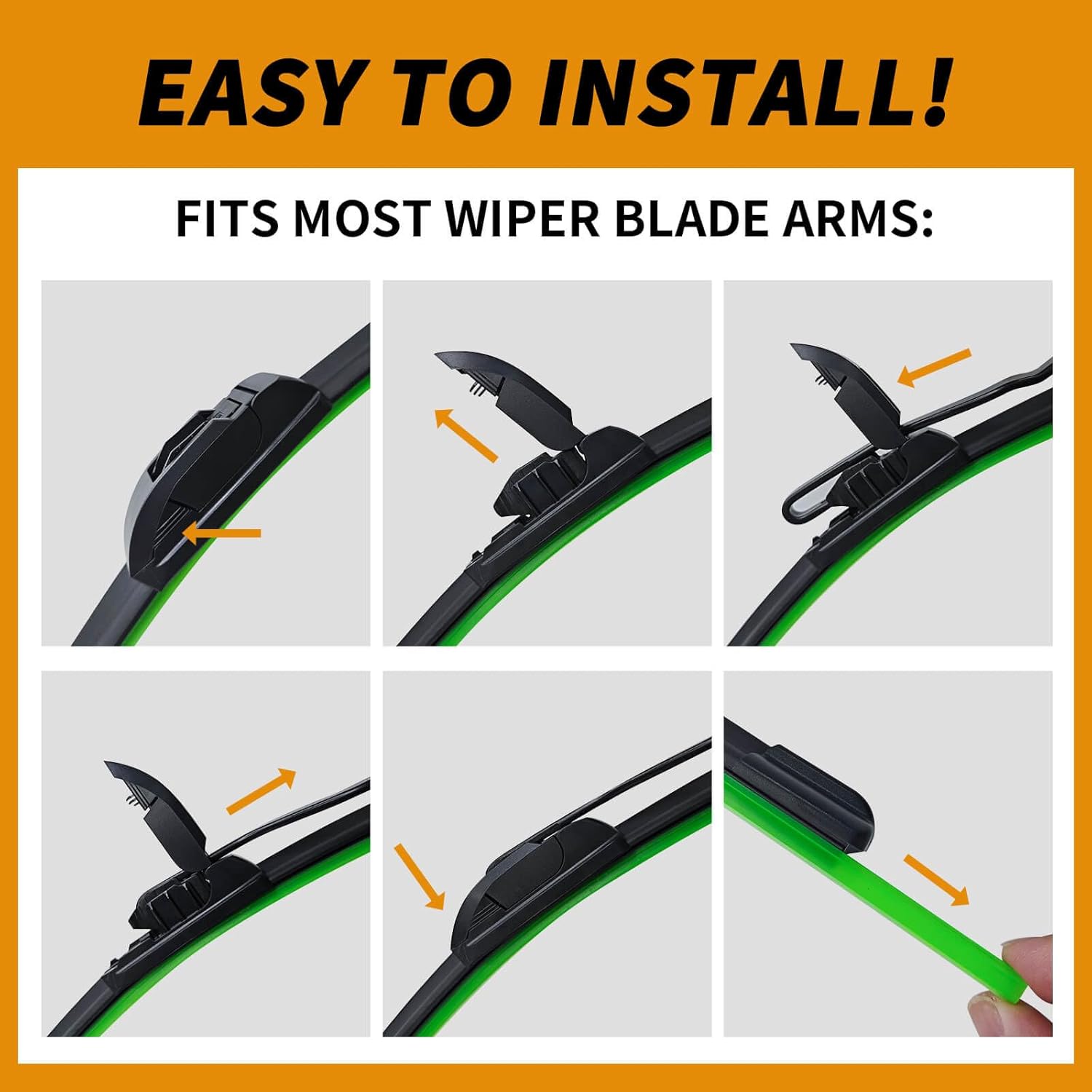 Mine installed easily on standard j-arms on a couple of vehicles just for testing purposes. Don’t forget to take the bright green plastic covers off. It was nice for the manufacturer to include those; it’s not often I see particular attention to detail. Wiper blades can be easily damaged, and bouncing around under a seat can prematurely wear them out. Recommended.