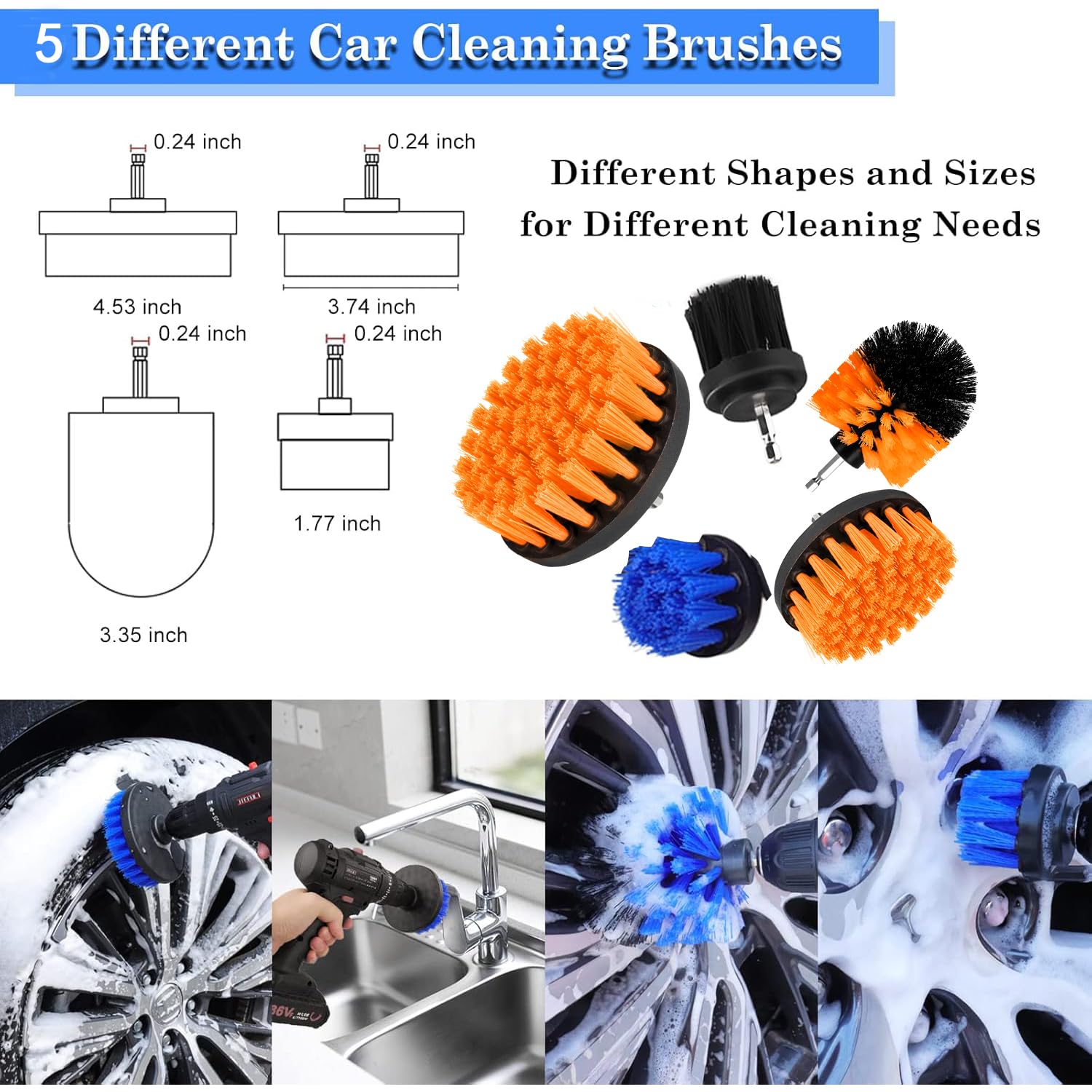 As escovas para furadeira vêm em 5 formatos e rigidezes diferentes, permitindo que você limpe superfícies internas e externas do automóvel com facilidade. Além disso, essas escovas e almofadas de polimento são versáteis o suficiente para serem usadas em banheiros, rodas, chuveiros, cozinhas, banheiras e carpetes, tornando este kit uma escolha perfeita para manter sua casa e carro impecáveis.