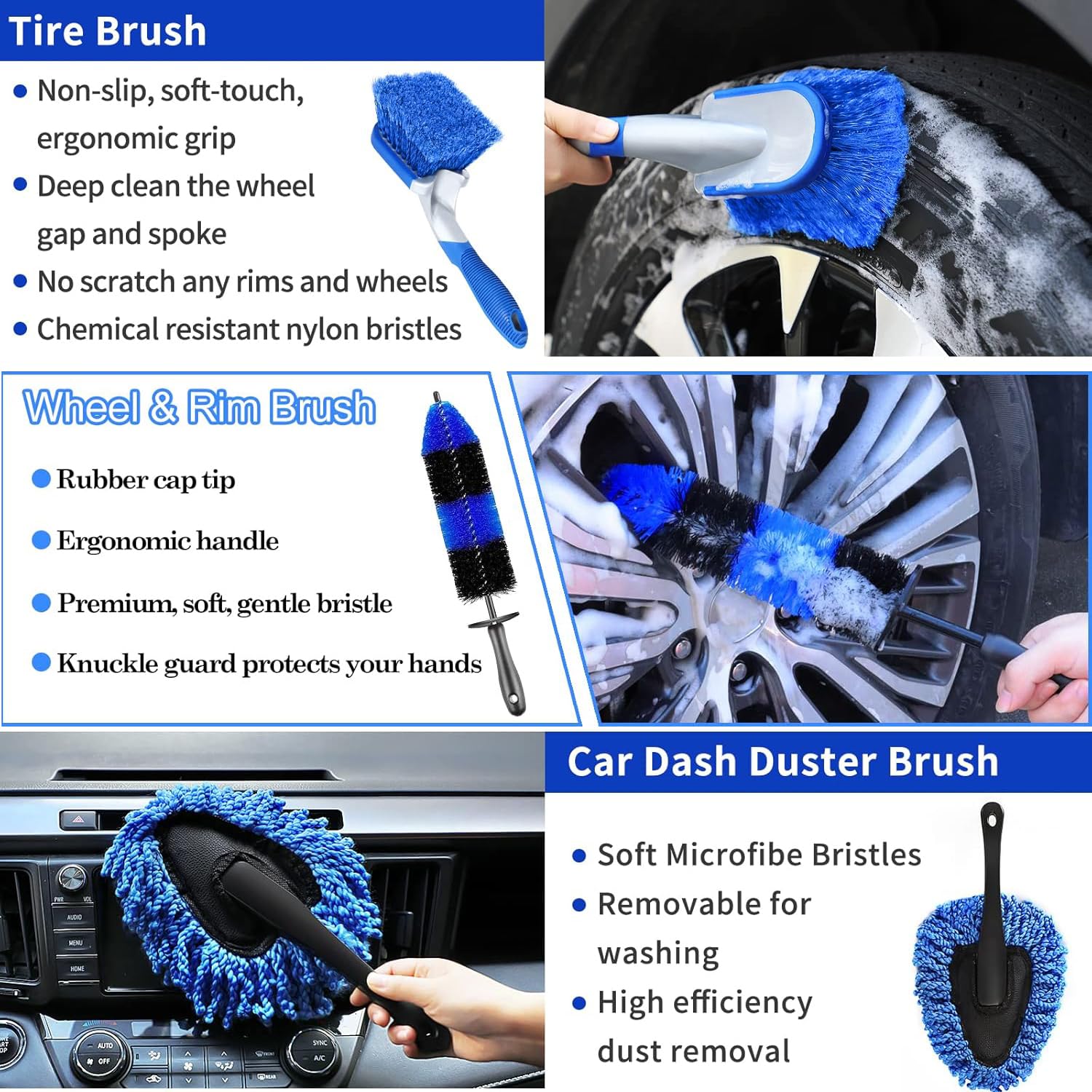 #### 【5 x Car Detail Cleaning Brushes & 3 x Wire Brushes】