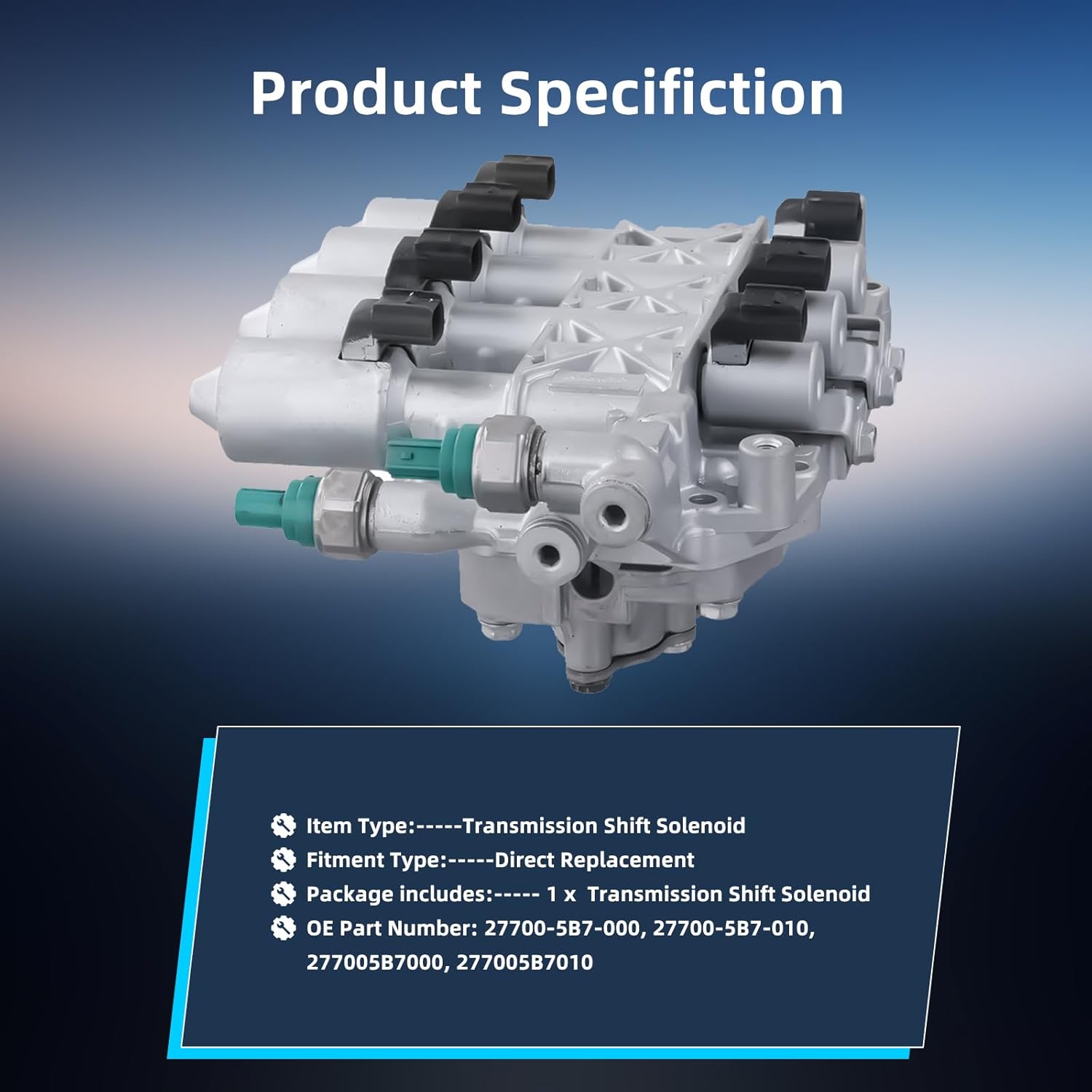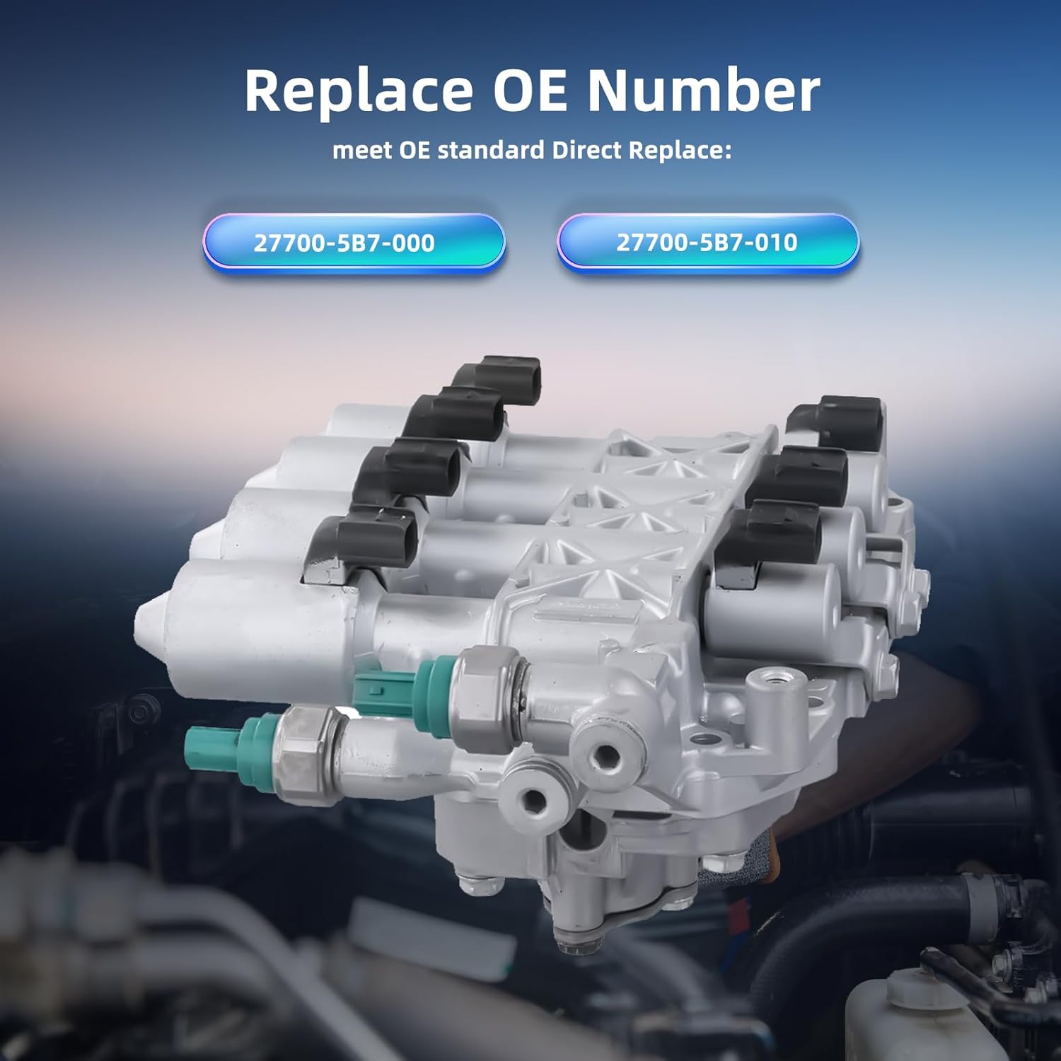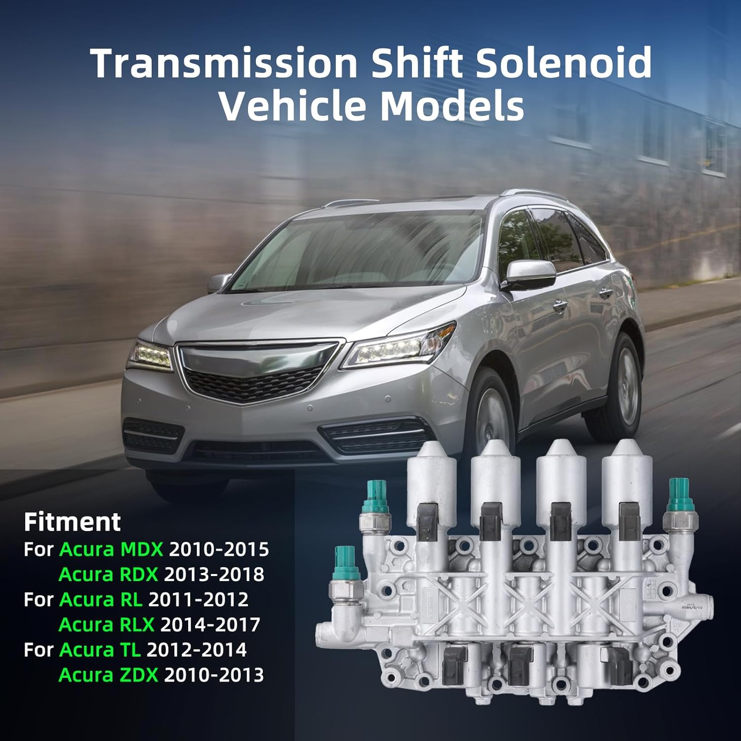 Resposta: A Válvula Solenoide de Mudança de Transmissão 27700-5B7-010 é compatível com Acura MDX (2010-2015), RDX (2013-2018), RL (2011-2012), RLX (2014-2017), TL (2012-2014) e ZDX (2010-2013).