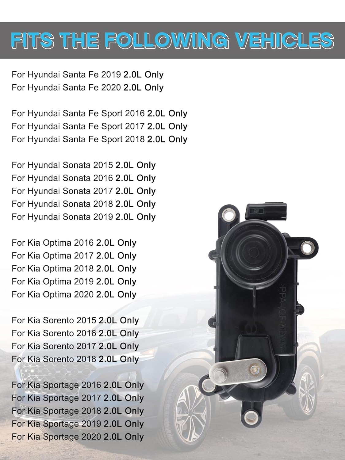 - FITMENT: Compatível com Hyundai Santa Fe 2019-2020/Santa Fe Sport 2016-2018/Sonata 2015-2019, Kia Optima 2016-2020/Sorento 2015-2018/Sportage 2016-2020 — apenas 2.0L.