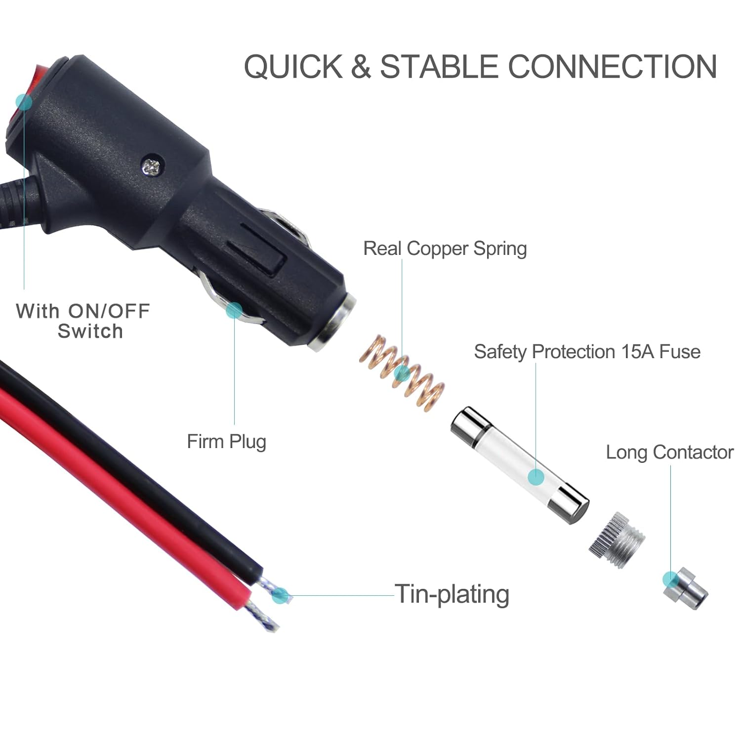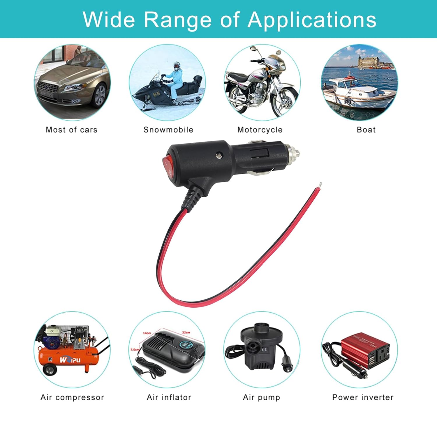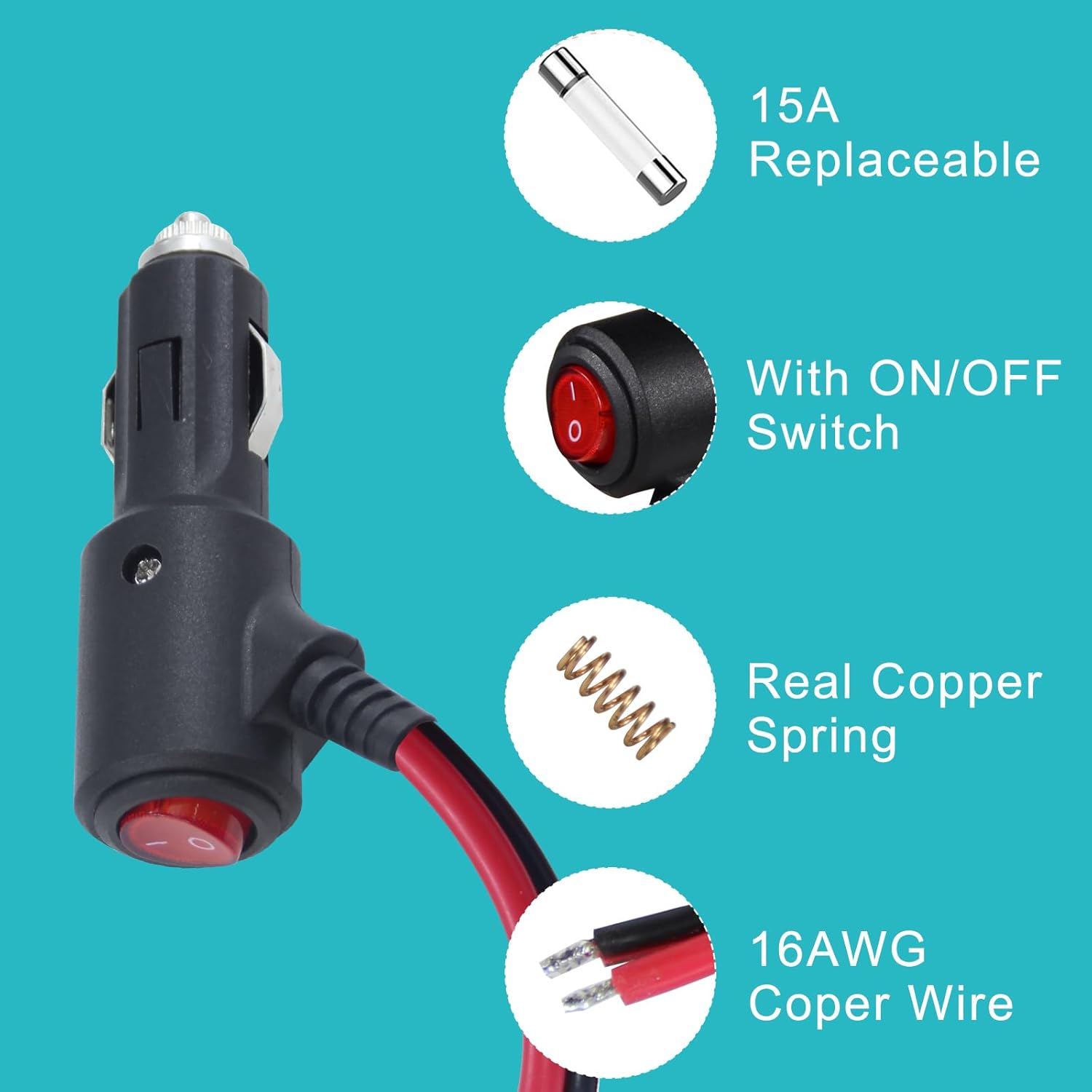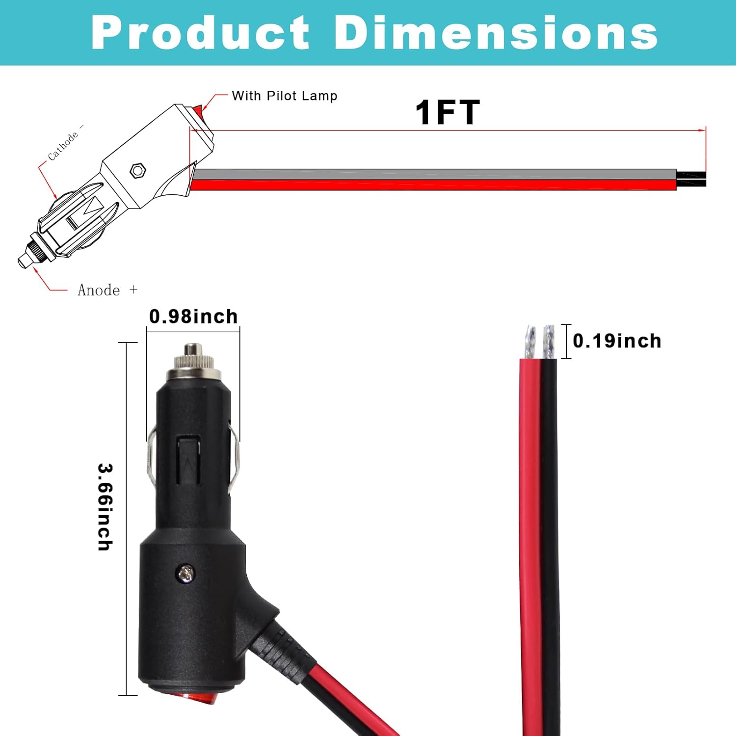 284 avaliações para [2PACK] Plug Macho Substituto para Acendedor de Cigarros 12V com Interruptor On/Off – 1FT 12V 15A com Fios e Luzes LED, 16AWG para Cooler de Carro e Rádio CB