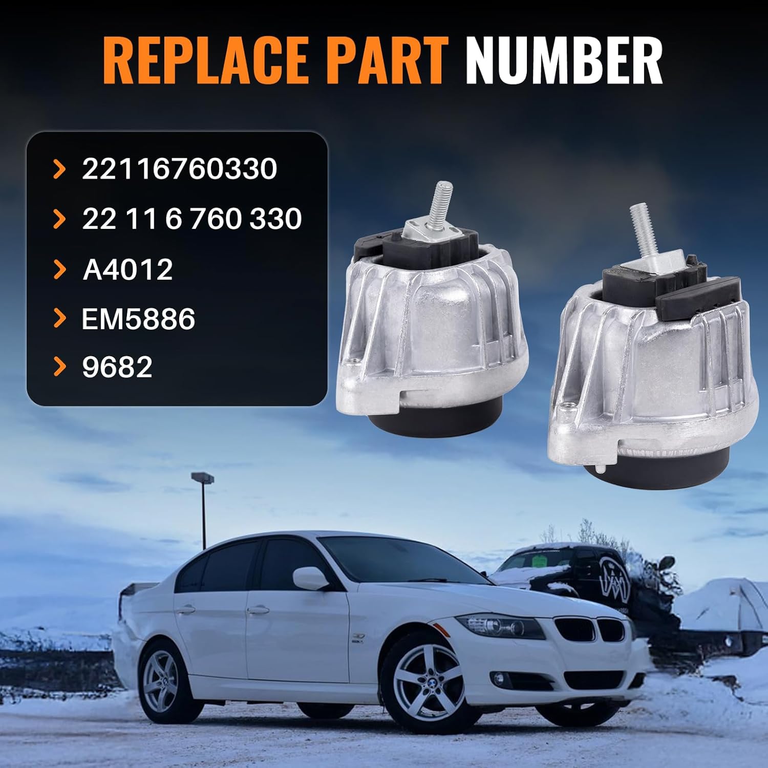 My 2008 BMW 325xi had a broken motor mount, and the dealership quoted me $800+ for parts and labor. This A4012 Mount Set was a fraction of the cost and took me 90 minutes to install. The mounts are identical to the originals (part #22116760330), with reinforced rubber that handles heat and stress better. My engine no longer bucks when shifting gears, and cabin noise dropped noticeably. Pro tip: Use a floor jack to support the engine during installation—it’s straightforward if you follow YouTube tutorials. Seller shipped fast and even double-checked my model year. Highly recommend!