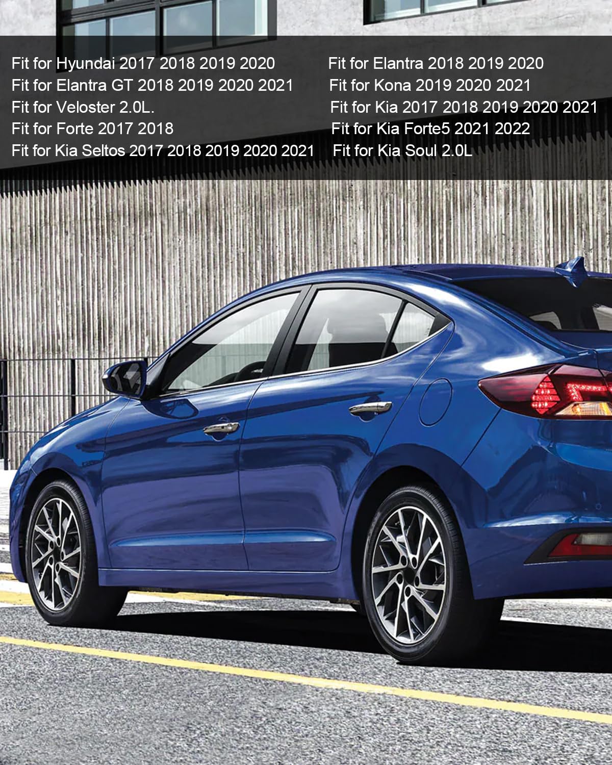 – Compatibilidade: Hyundai Elantra (2017-2020), Elantra GT (2018-2020), Kona (2018-2021), Veloster 2.0L (2019-2021); Kia Forte (2017-2021), Forte5 (2017-2018), Seltos (2021-2022), Soul 2.0L (2017-2021).