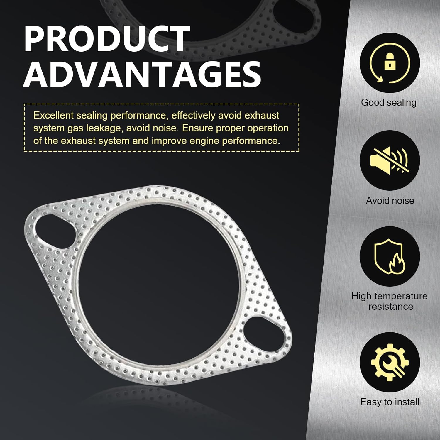 Desempenho Superior de Vedação: O gasket proporciona propriedades de vedação e isolamento excepcionais, evitando a fuga de gases do tubo e reduzindo o ruído do motor. Isso não apenas melhora a eficiência do veículo, mas também contribui para uma experiência de condução mais silenciosa e agradável.