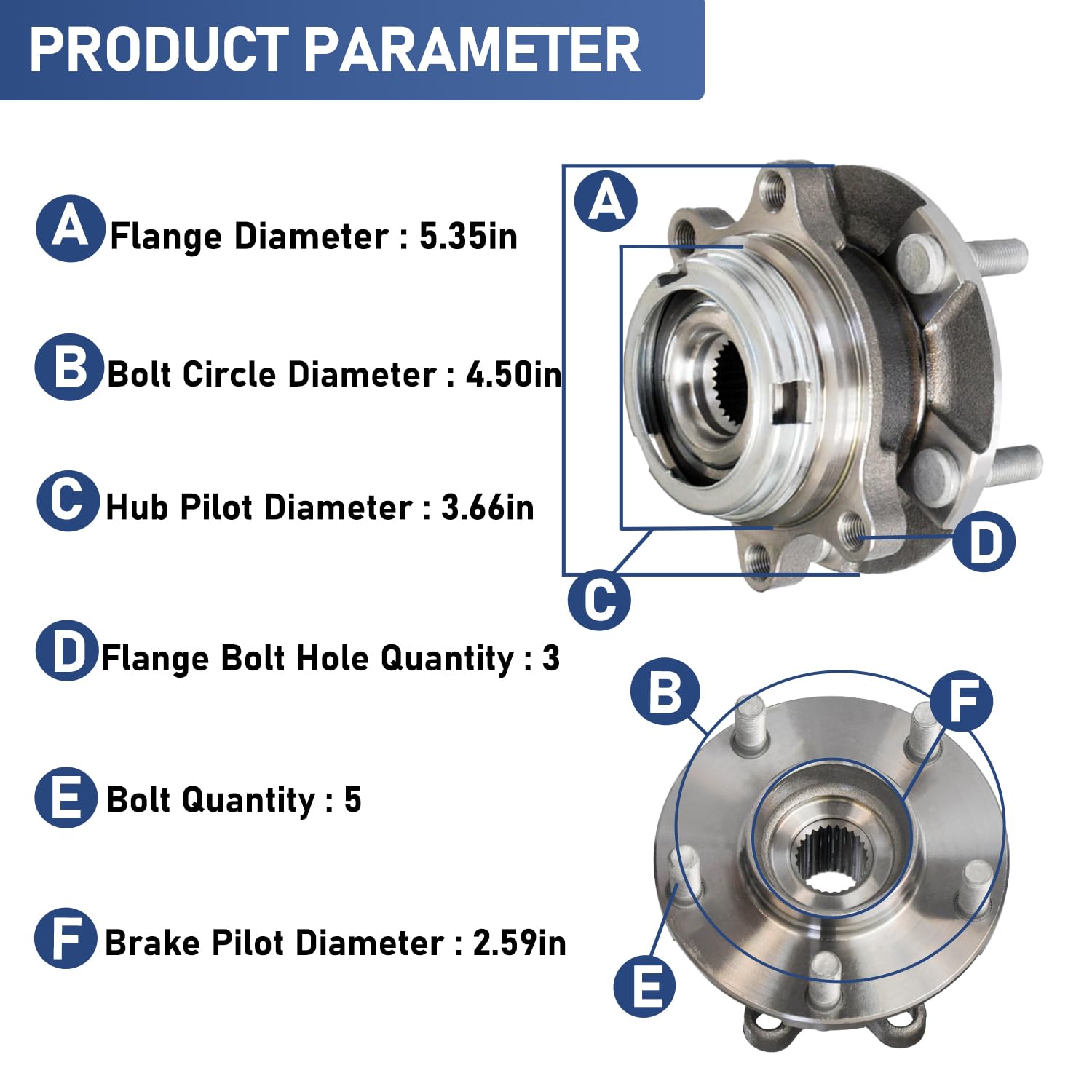 1 avaliação para Conjunto de Rolamento de Roda Dianteira 2Pcs HA590125 para Infiniti FX35 FX45 FX50 G35 AWD 2003-2013