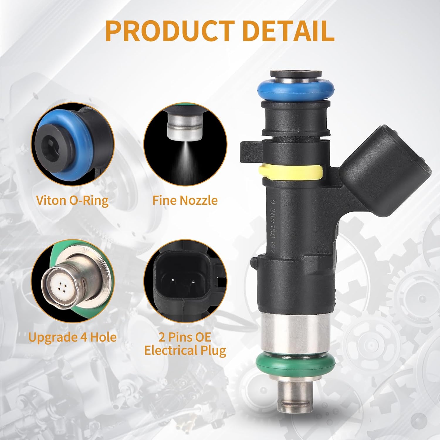 - 【PERFORMANCE】O injetor de combustível equilibra a entrega de combustível, o que pode melhorar o desempenho do motor, reduzindo efetivamente as vibrações do carro e aprimorando sua experiência de condução. Ao mesmo tempo, nosso injetor de combustível de 4 furos adota um design de pulverização atomizada, que não apenas diminui o desgaste do cilindro e dos anéis do pistão, mas também melhora significativamente a economia de combustível.