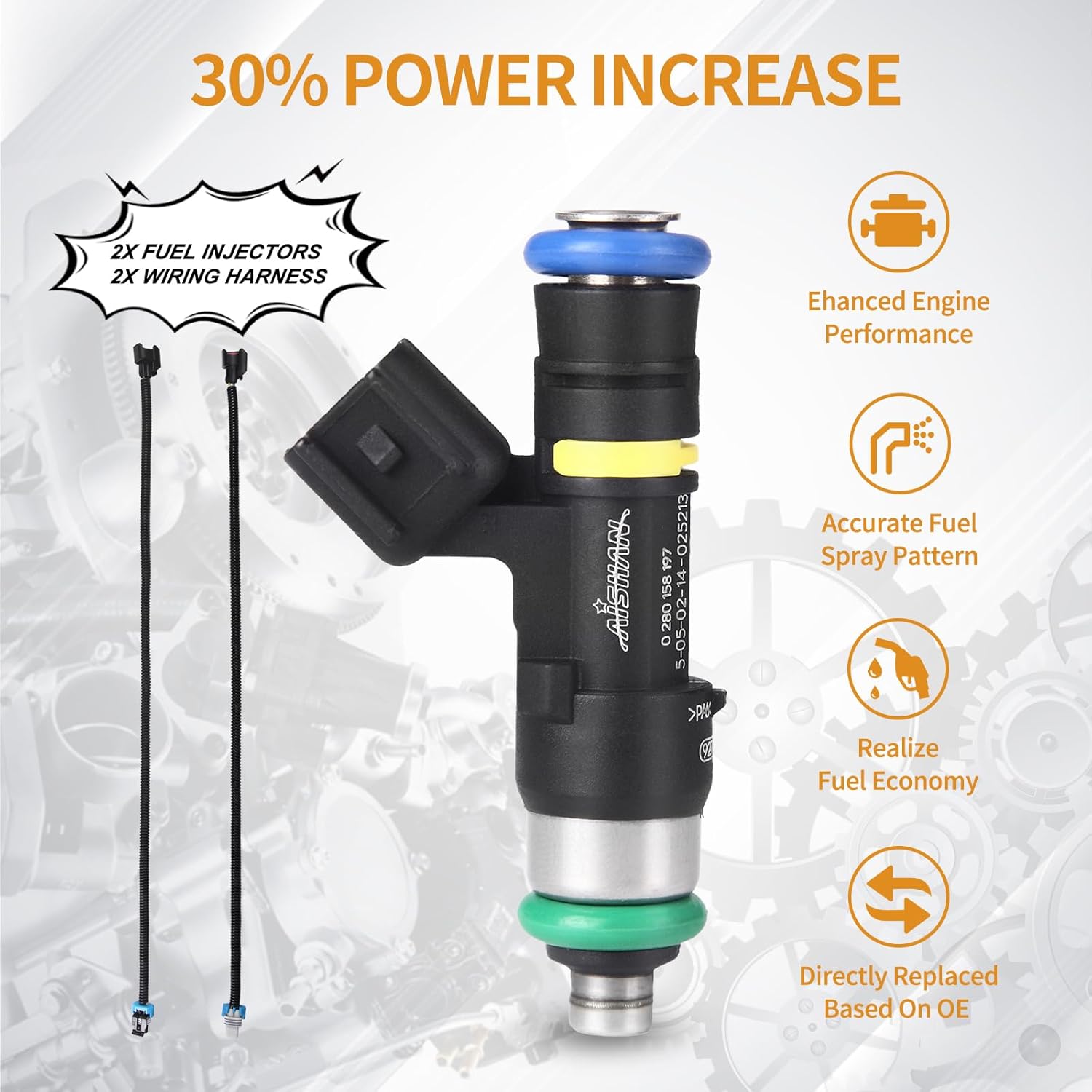 - 【SPECIFICATION】Material do injetor de combustível – plástico composto e aço inoxidável; Material do O-ring – viton, pré-instalado; Número de furos – 4 furos; Número de terminais – 2 pinos. Pacote – 2 x Injetores de Combustível + 2 x Chicotes Elétricos