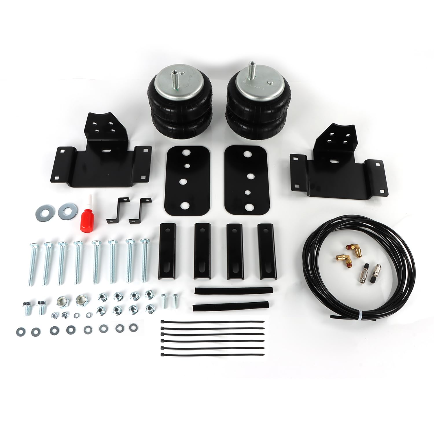 I got this suspension kit for my Silverado since I needed to fix the sagging when I towed my trailer. My truck used to squat really badly when I hooked up my camper but now it sits much more level and looks much better. I think the ride is improved when I am hauling and I feel like I have more control of the truck. Installation took me a little longer than I expected but I was able to get them installed myself and save some money. I considered the Firestone brand but these were cheaper and I am happy with how they perform so far.