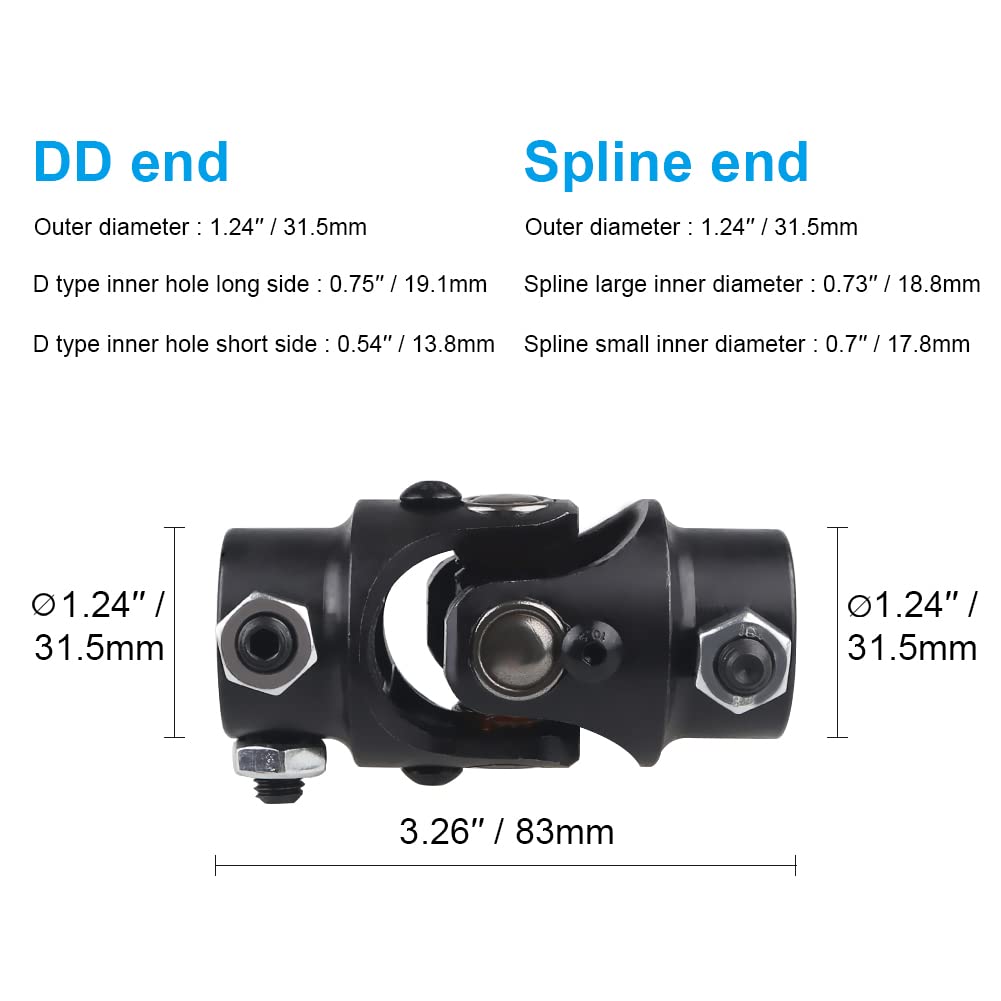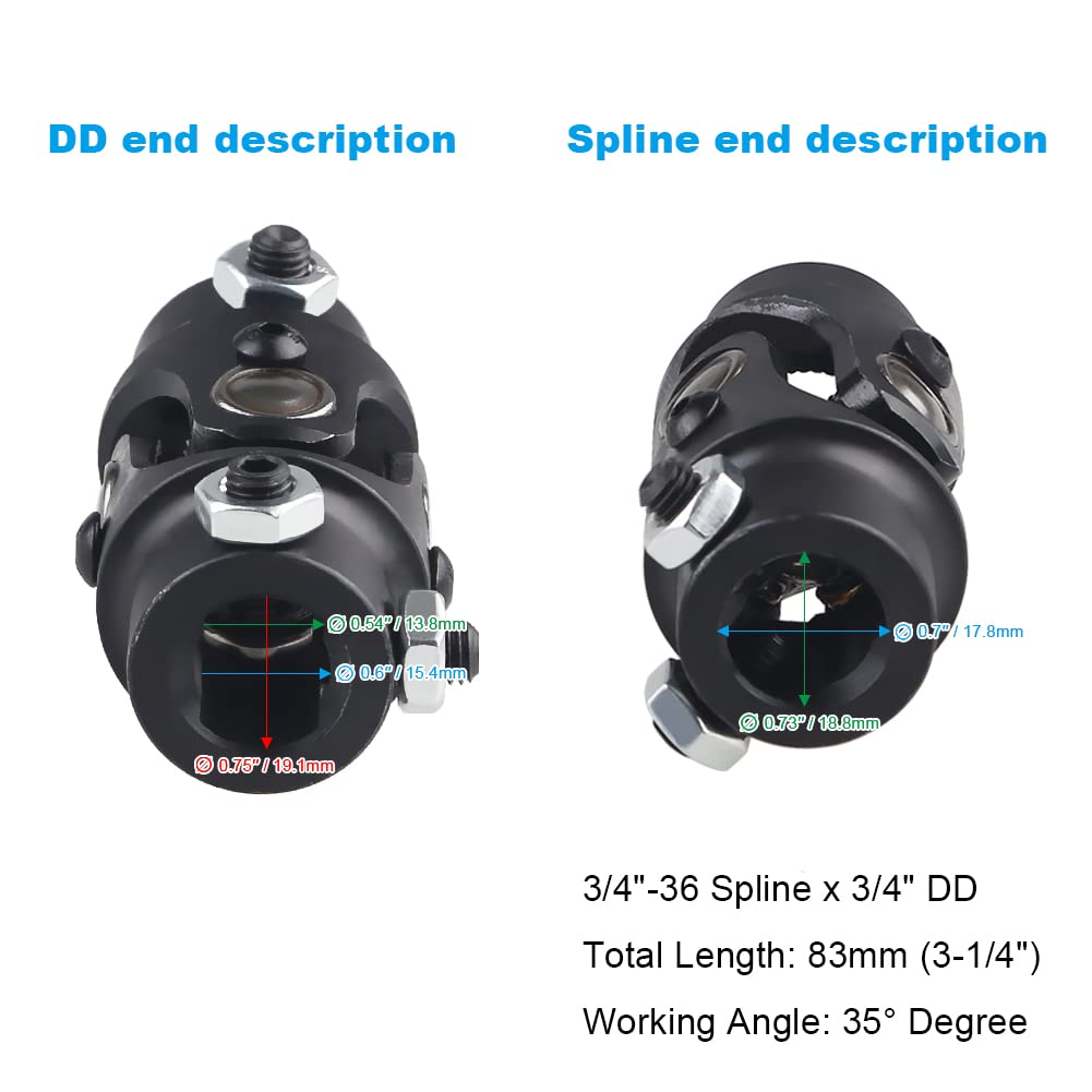 – Dimensões: 3/4″-36 Spline x 3/4″ DD, comprimento total de 83mm (3-1/4″).