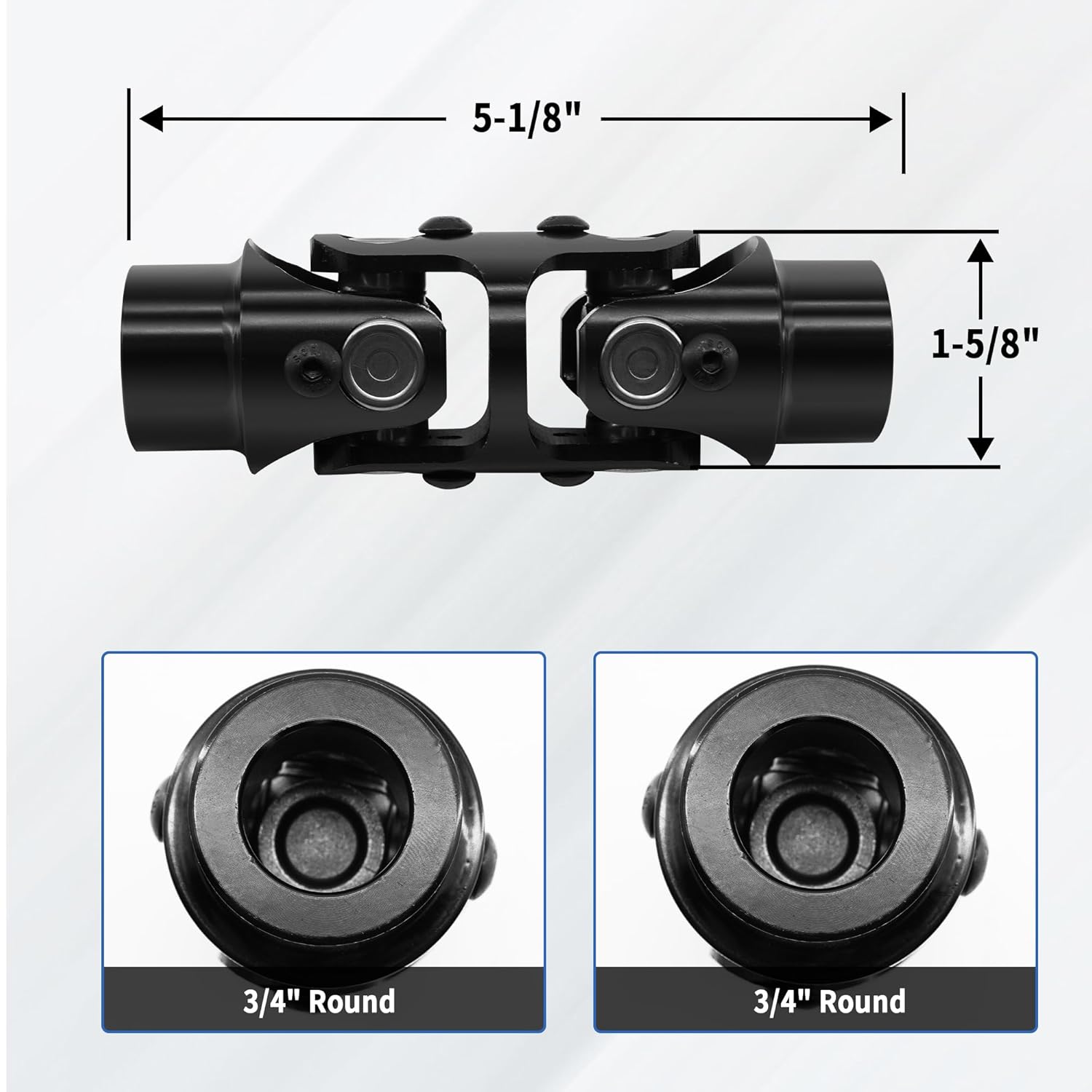 Com dimensões de 3/4″ Smooth Round a 3/4″ Smooth Round (3/4″ Redondo x 3/4″ Redondo), o produto possui um comprimento total de 5-1/8″ e um diâmetro externo de 1-5/8″. Sua capacidade de operar em velocidades de até 4000rpm torna-o uma escolha confiável para substituições diretas em sistemas de direção. É fundamental verificar o tamanho e o número de estrias em ambas as extremidades antes da compra, garantindo assim a compatibilidade com o seu veículo.