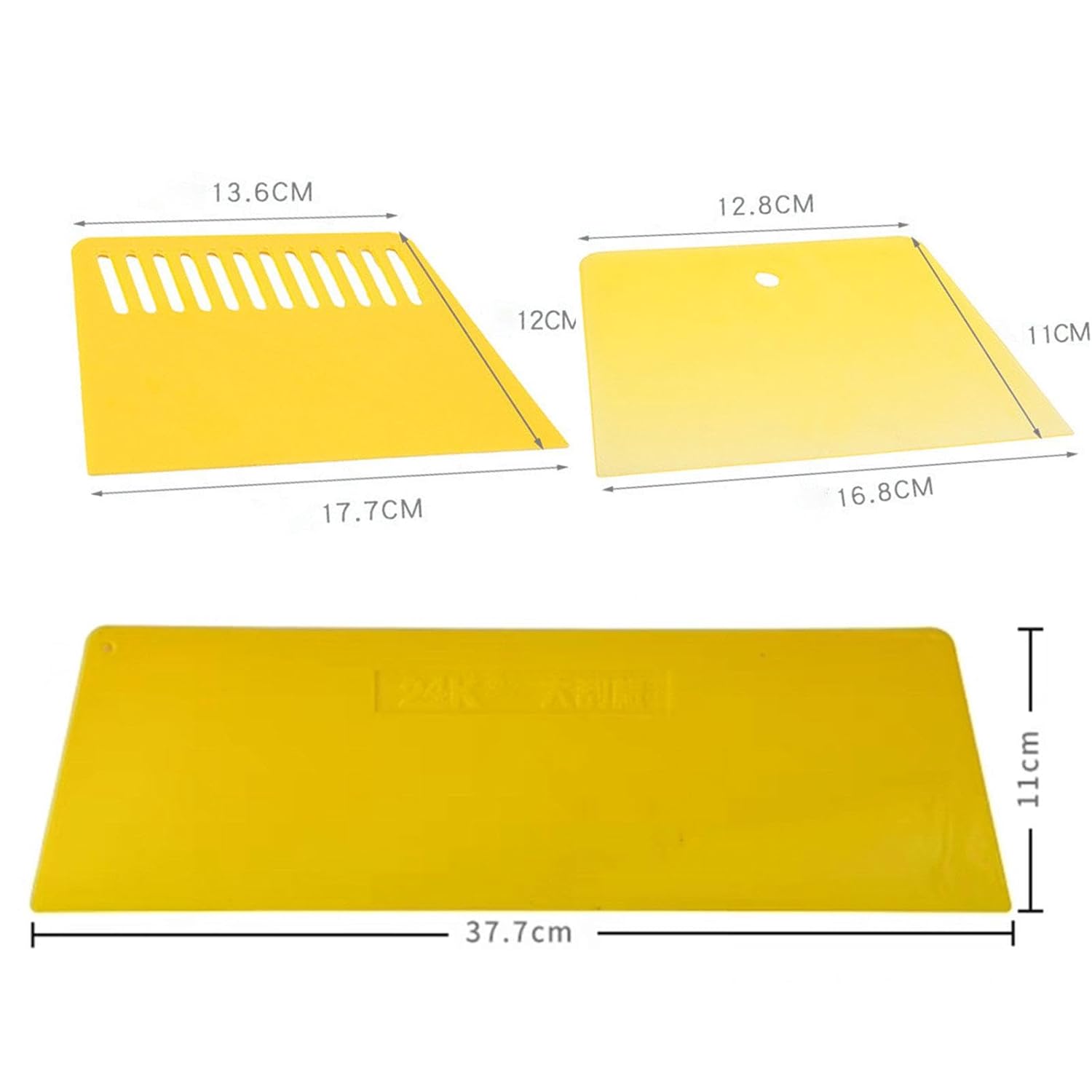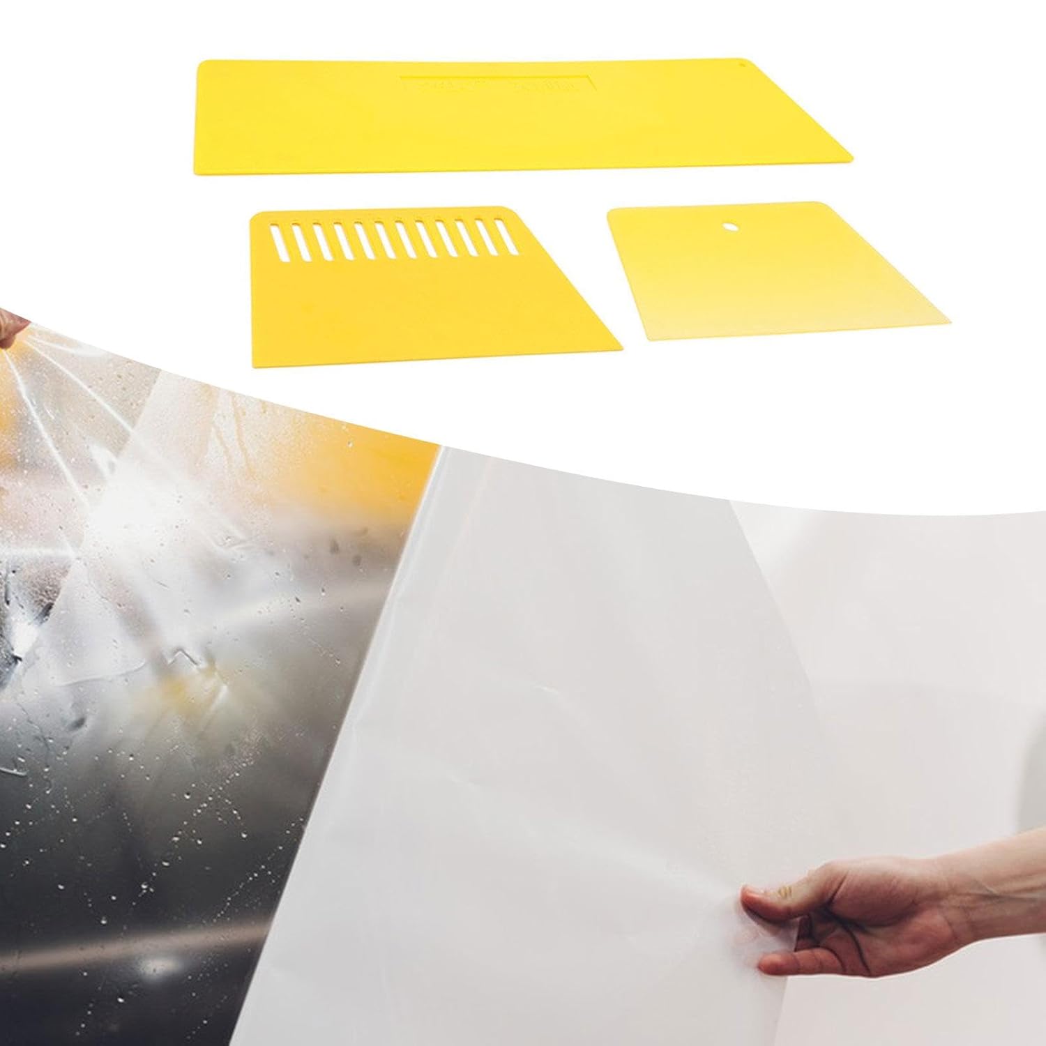 Espátulas Flexíveis para Massa Automotiva - 3 Peças Amarelas para Instalação de Filme em Carros - Ferramenta Versátil de PP