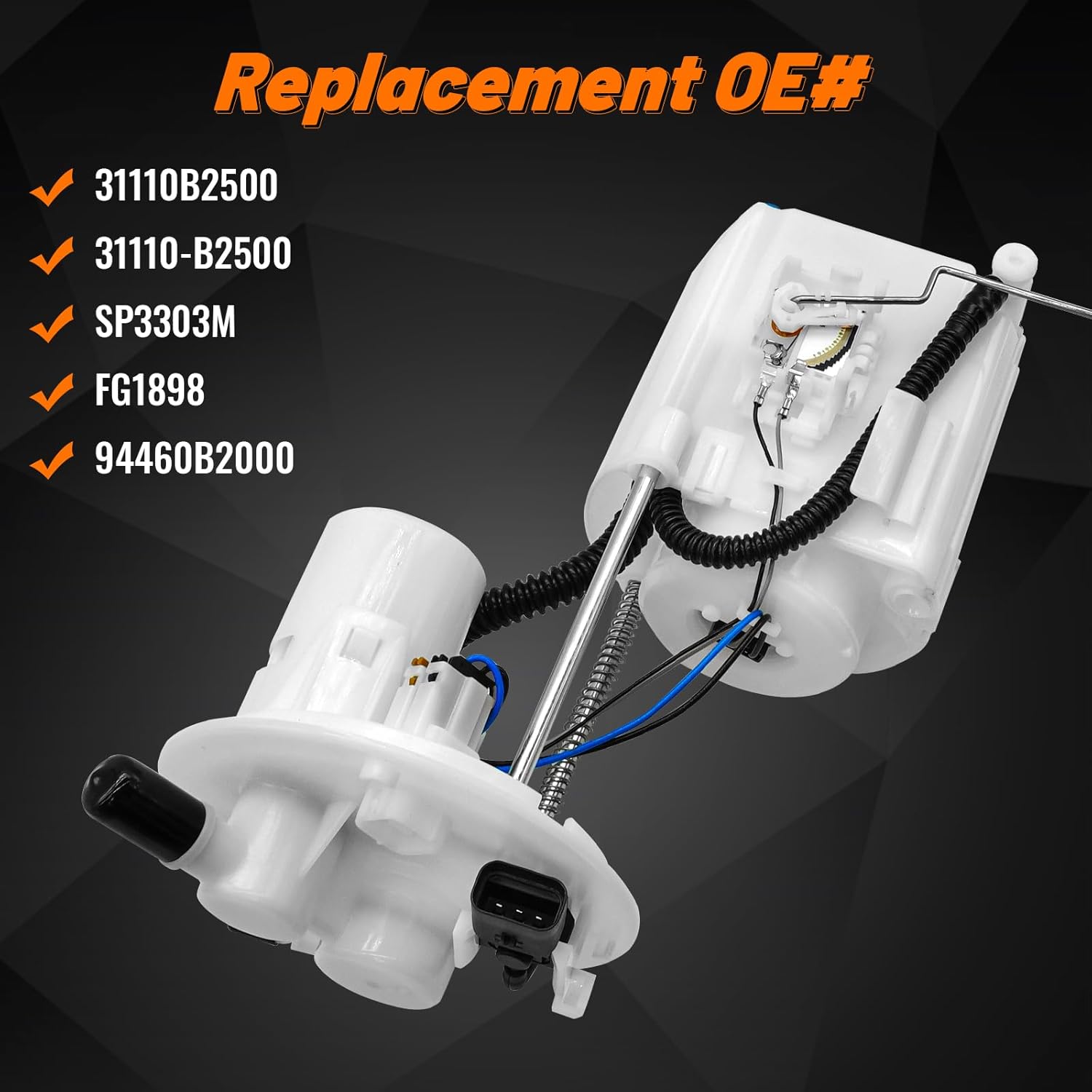 – Substitui as montagens da bomba de combustível com os números de OE: 31110B2500, 31110-B2500, SP3303M, FG1898, 94460B2000.