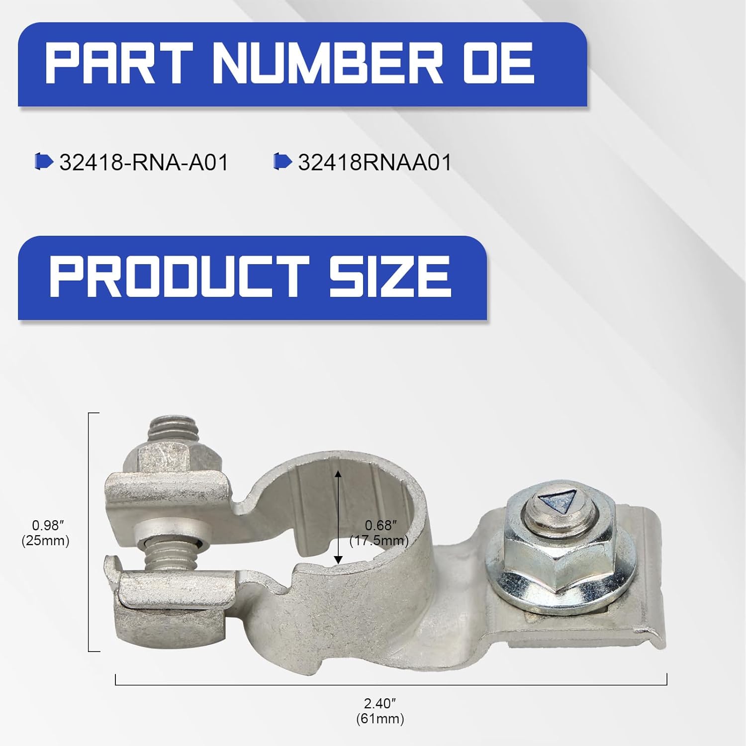 - ✔ Resolve Problemas Elétricos Comuns: Um terminal de bateria corroído ou danificado pode levar a partidas inconsistentes, falhas no sistema elétrico e problemas de carregamento. O terminal 32418-RNA-A01 resolve esses problemas ao restaurar uma conexão firme e segura entre a bateria e o sistema elétrico do seu veículo.