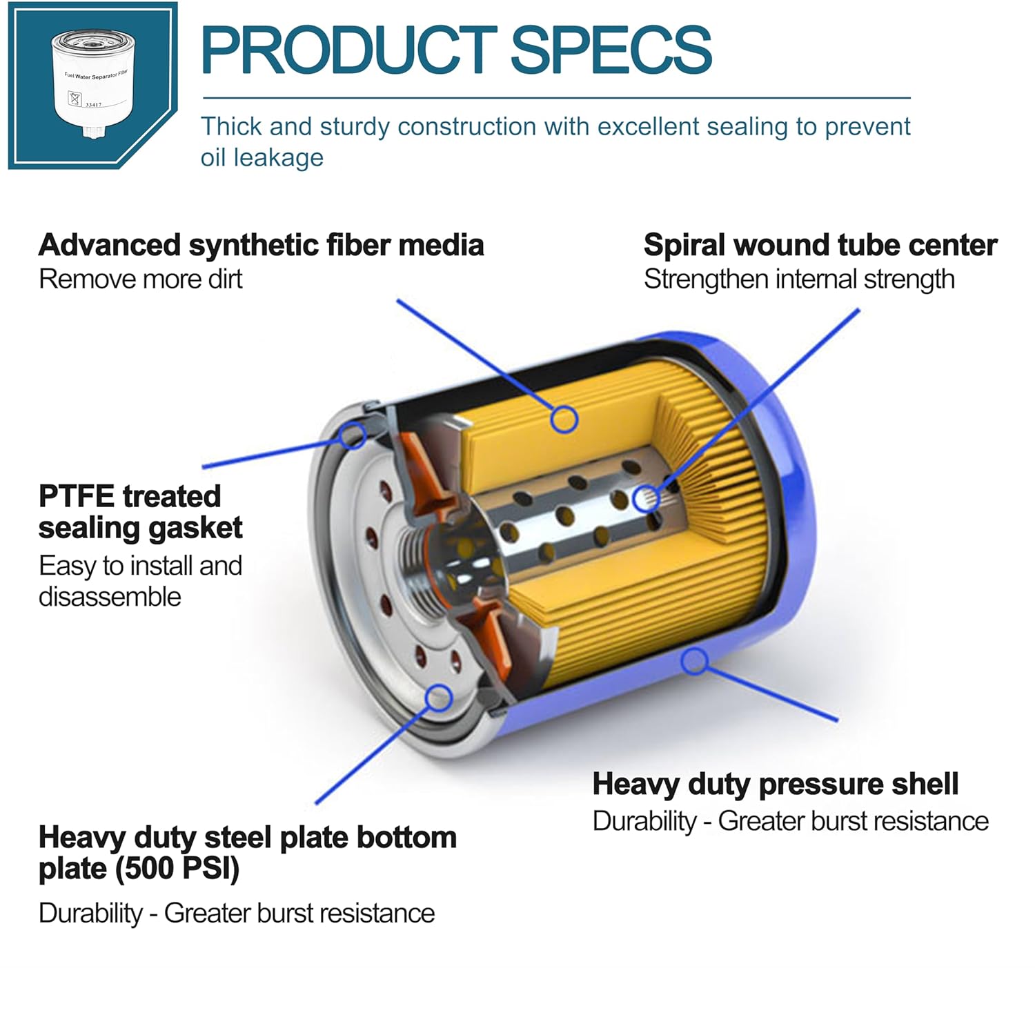 O Separador de Água e Combustível 33417 Heavy Duty Spin On é a solução ideal para quem busca eficiência e confiabilidade em sistemas de combustível diesel. Compatível com uma ampla gama de veículos, incluindo modelos da Ford como o E-250 (1988-1991), E-350 (1988-1994), F-250 (1988-1994), F-350 (1988-1994) e F Super Duty (1988-1994), este filtro é projetado para atender às exigências dos motores mais robustos.