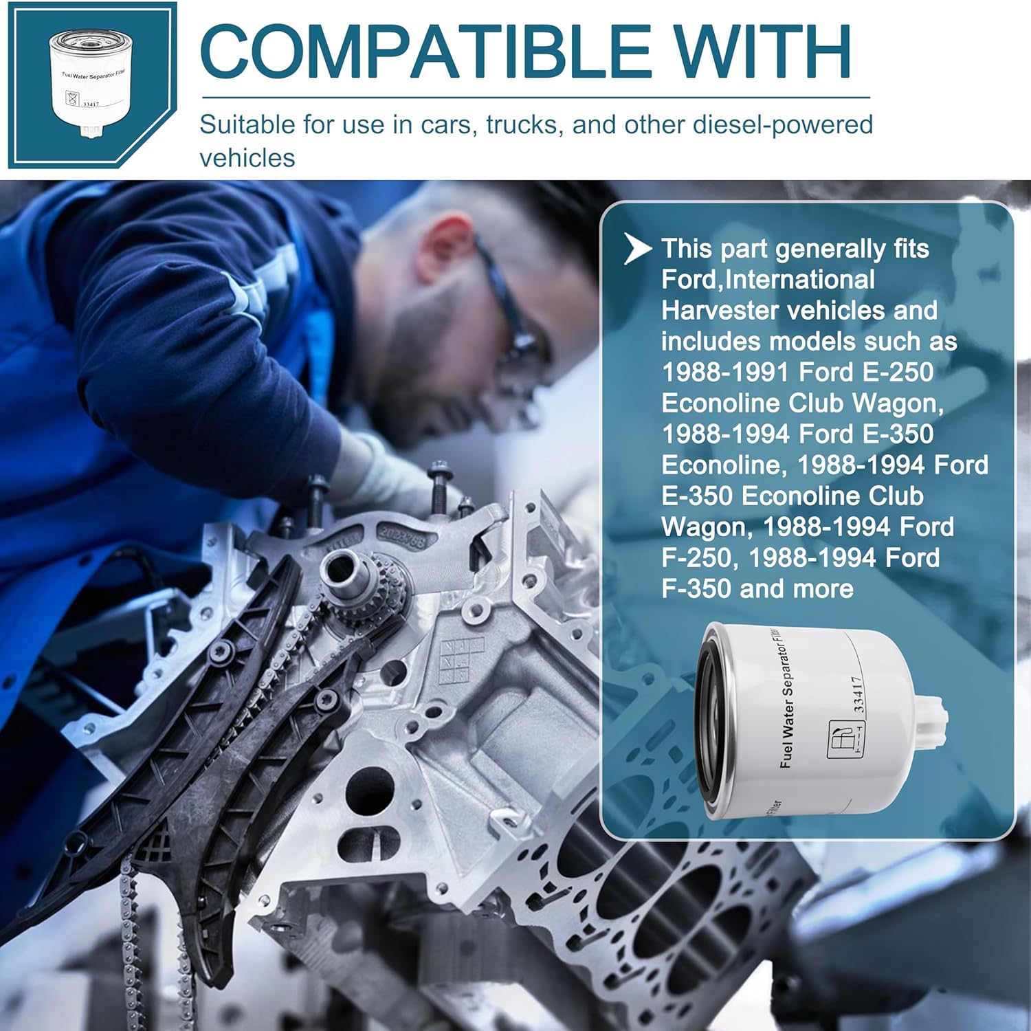 Pergunta: O separador de água e combustível 33417 é compatível com outros veículos além da Ford?