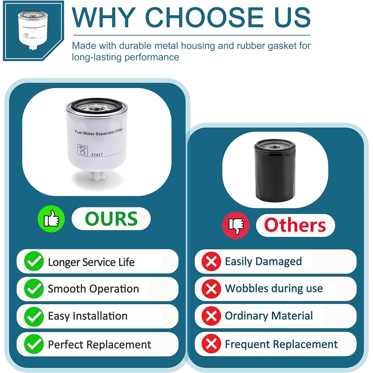 – Filtragem Eficiente: Remove água e partículas do combustível diesel, melhorando o desempenho do motor.