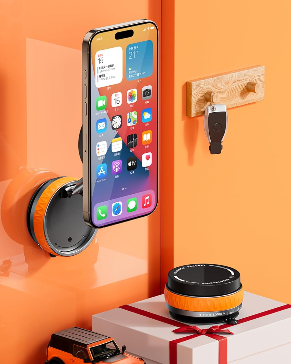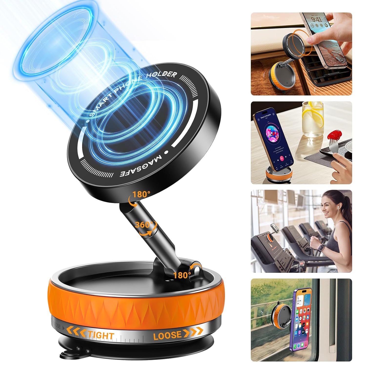 Suporte Magnético para Celular 360° com Ventosa Forte, ideal para carros, academias, espelhos e viagens. Compatível com iPhones 16/15/14/13 Pro Max, este suporte não utiliza bateria e oferece uma fixação segura e estável. Seu design rotativo de 360° permite ajustar o ângulo de visão facilmente, proporcionando conforto e praticidade durante o uso. A ventosa de alta aderência garante que o suporte permaneça firme em diversas superfícies, tornando-o uma solução versátil e confiável para manter seu celular sempre à mão.