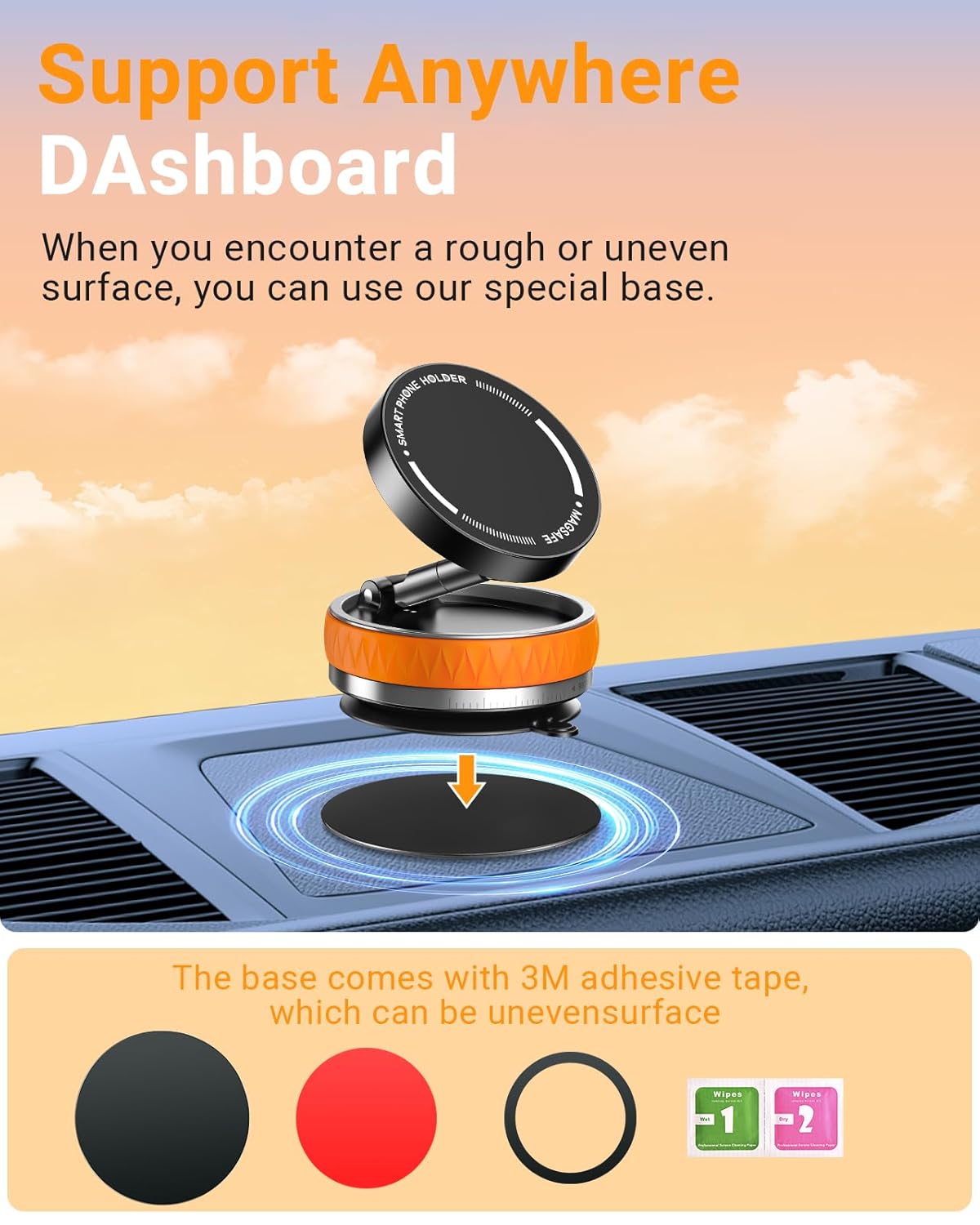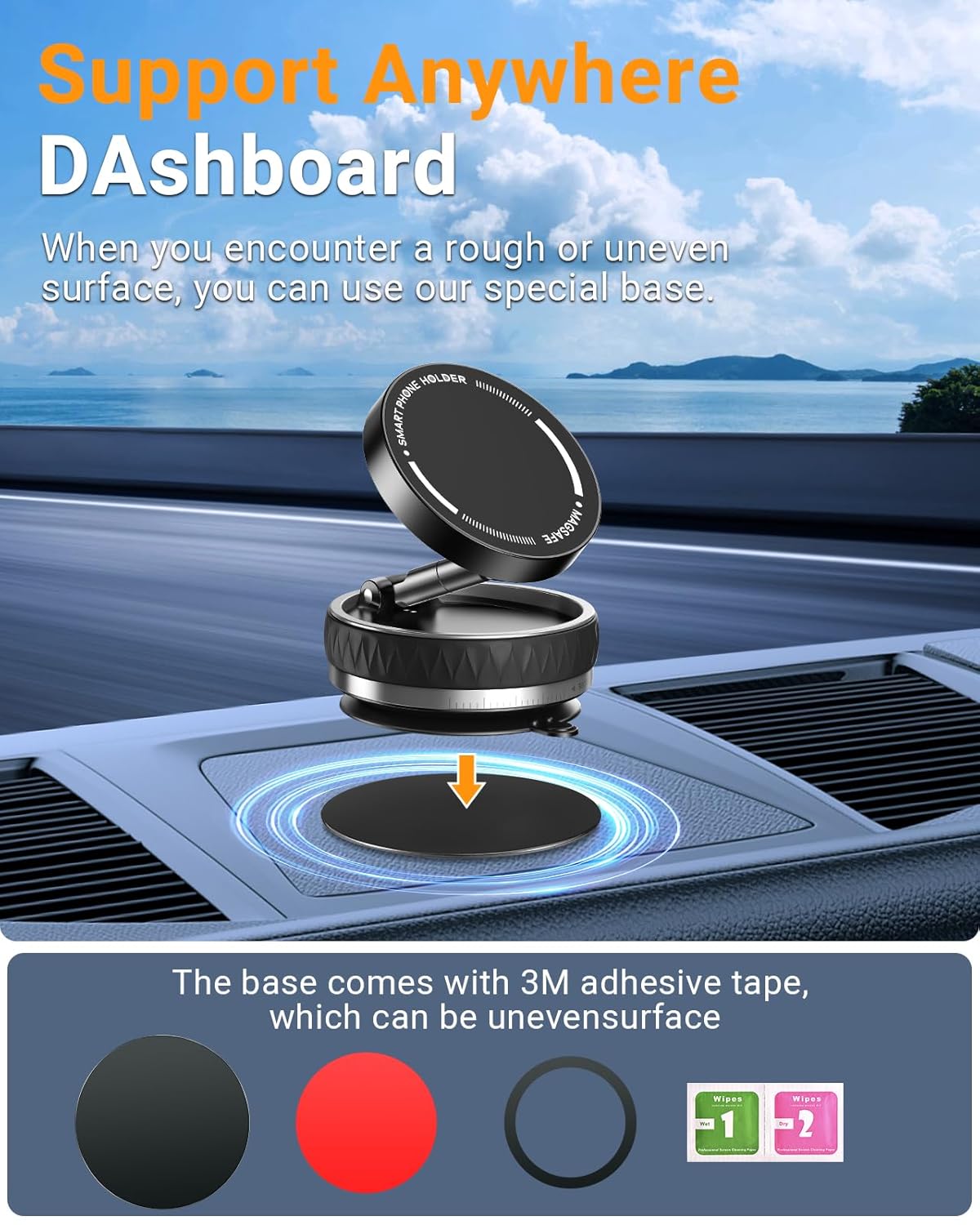 – Suporte Magnético Forte: Equipado com ímãs N52 de cobertura total, a superfície de contato não possui design oco, aumentando significativamente a potência de sucção e estabilidade. Seu celular permanecerá firmemente preso em qualquer condição de direção, garantindo segurança e confiabilidade.