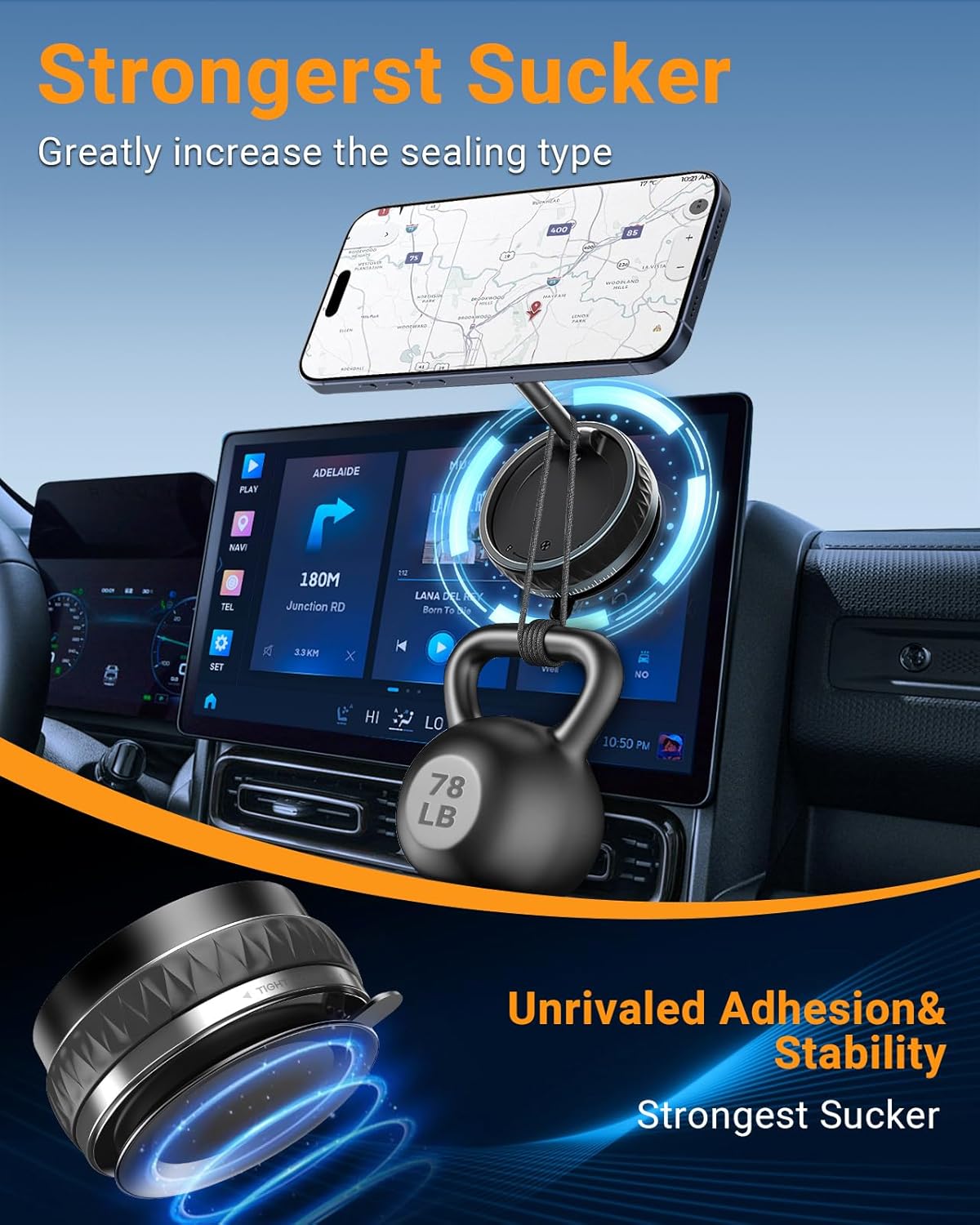The powerful suction and magnetic design ensure easy one-handed use, while the compact size doesn’t take up much space. Highly recommend for a reliable and convenient hands-free driving experience!
