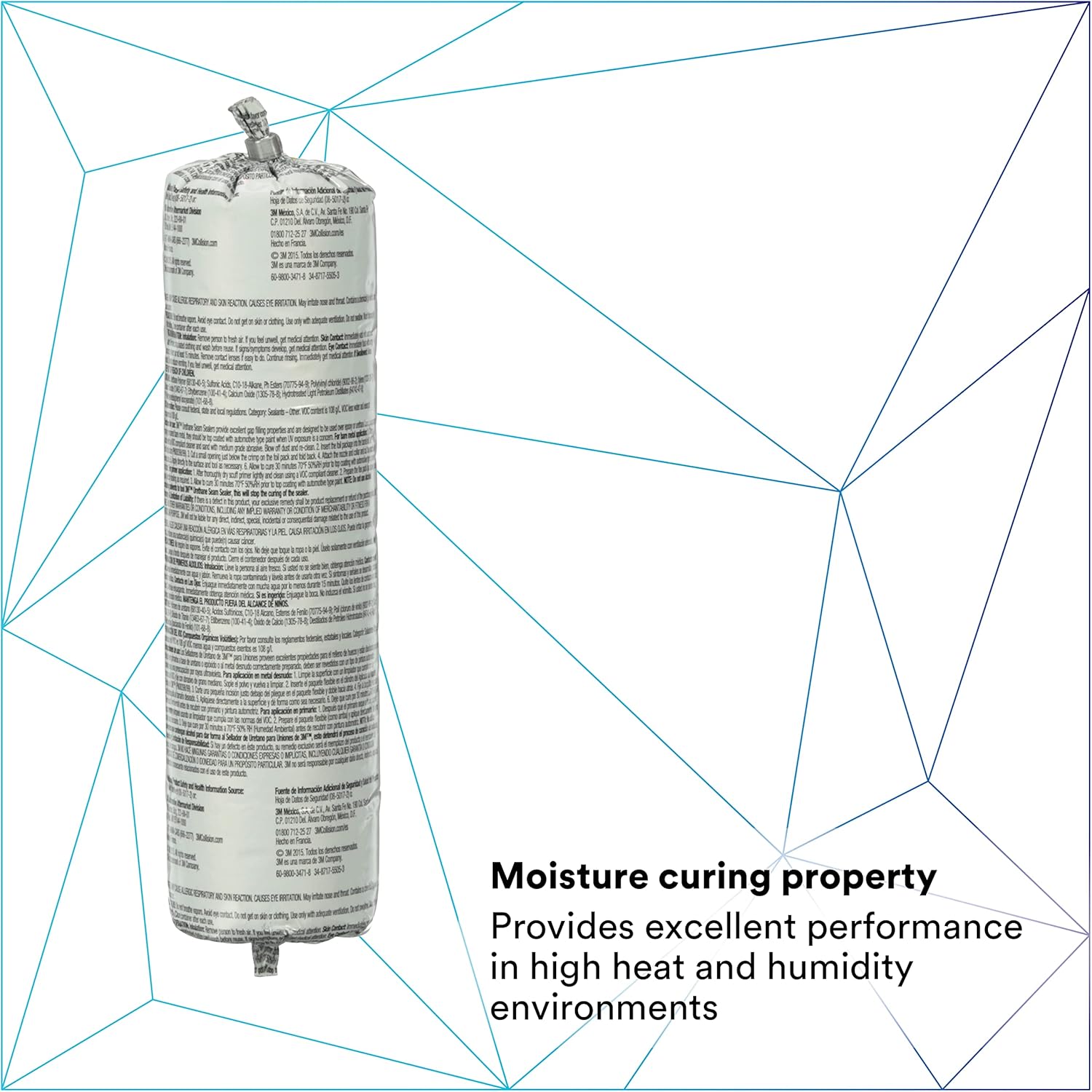 Uma das características mais notáveis do 3M Urethane Seam Sealer é sua propriedade de cura por umidade, que proporciona desempenho superior em ambientes de alta temperatura e umidade. Isso significa que, mesmo nas condições mais desafiadoras, o selante mantém sua integridade e flexibilidade, evitando problemas comuns como rachaduras e encolhimento. Ao contrário dos selantes à base de solvente, o 3M Urethane Seam Sealer não encolhe nem racha, garantindo resultados superiores e uma vedação confiável ao longo do tempo.