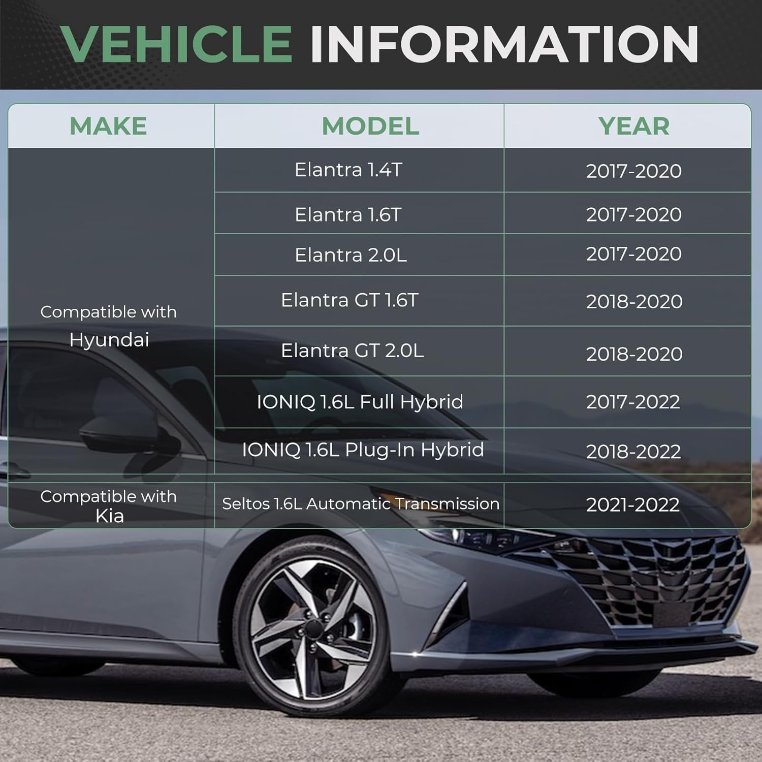 – Compatibilidade: Projetado para Hyundai Elantra (2017-2020), Elantra GT (2018-2020), IONIQ (2017-2022) e Kia Seltos (2021-2022).
